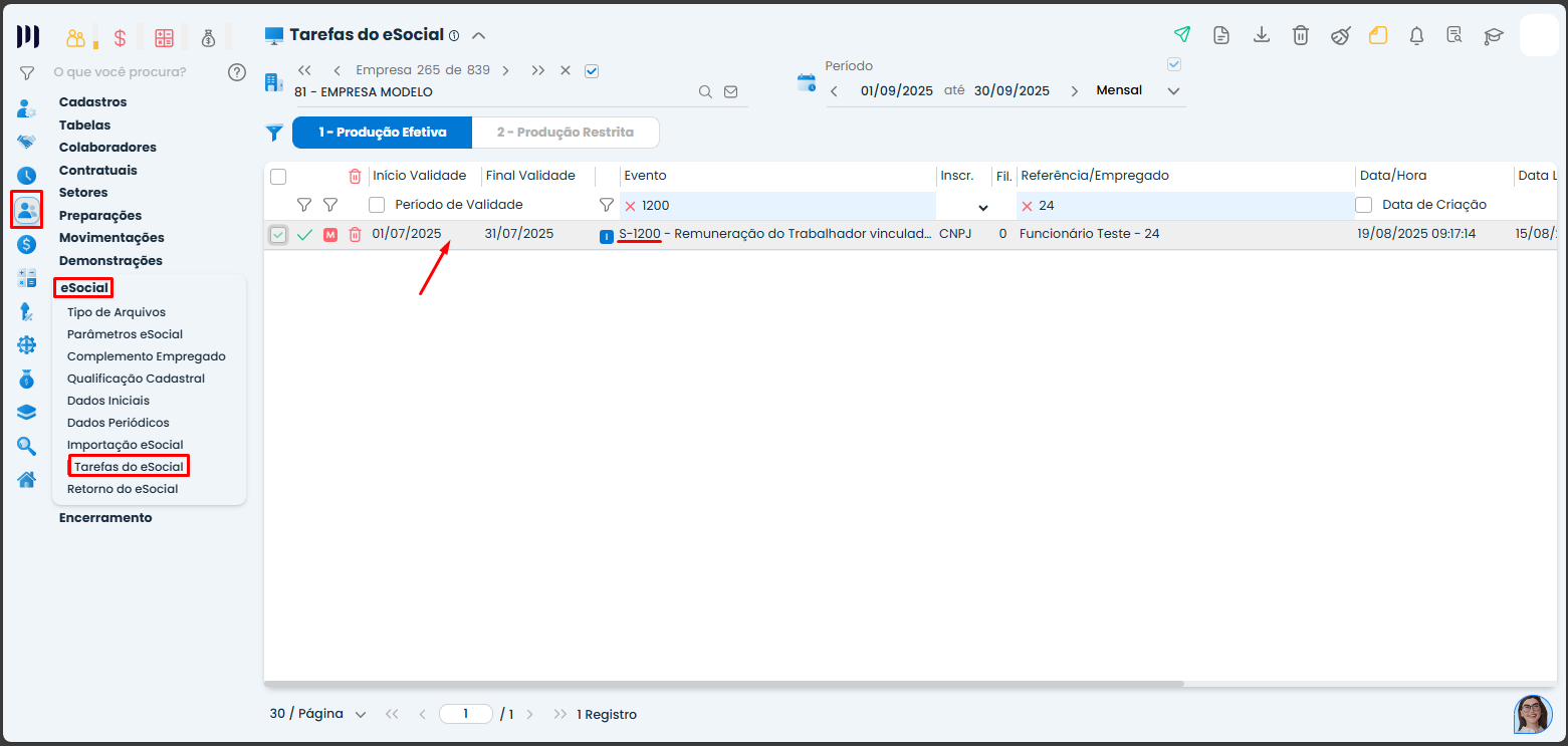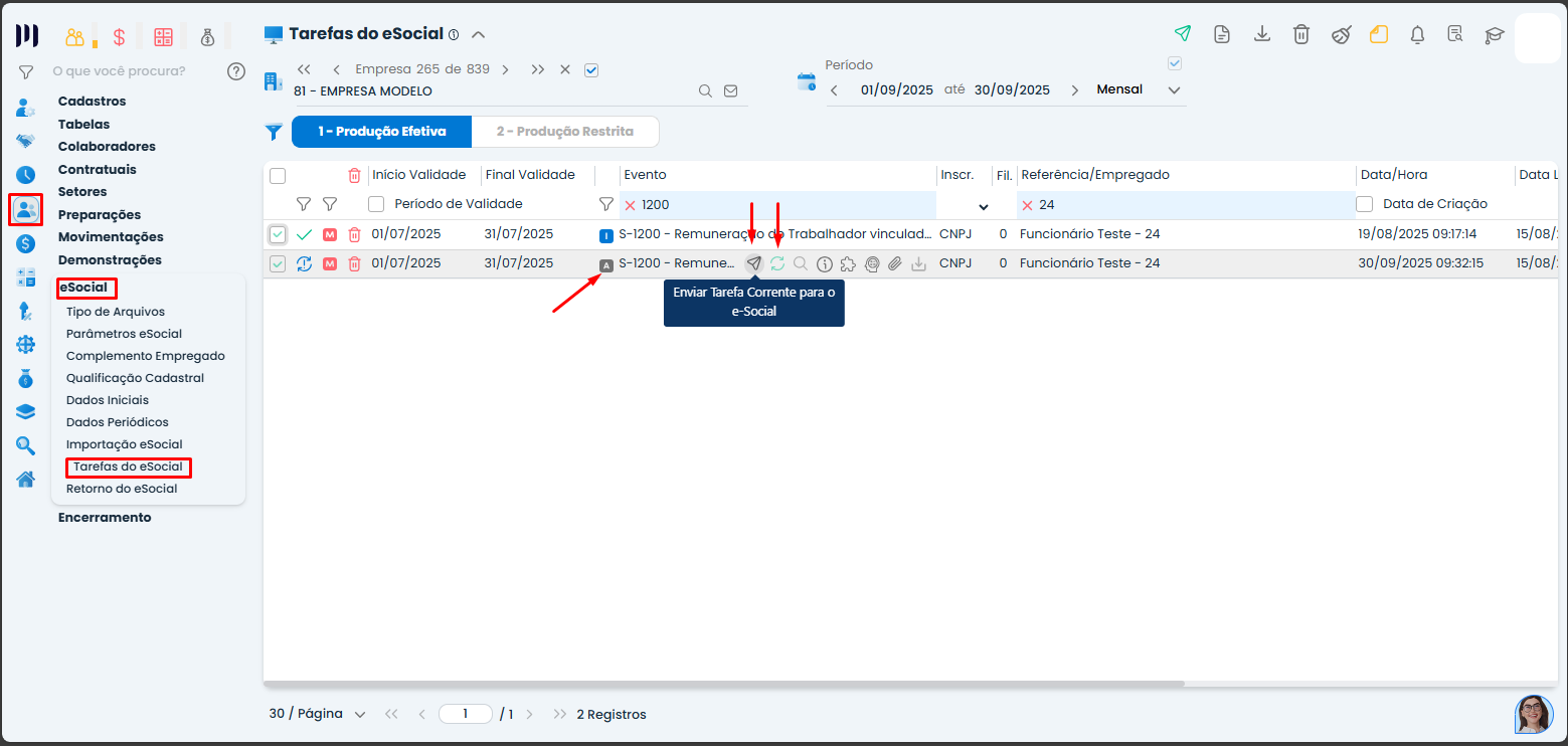 Passo 5: Verifique se todas as configurações estão corretas e faça o envio do evento ao eSocial;