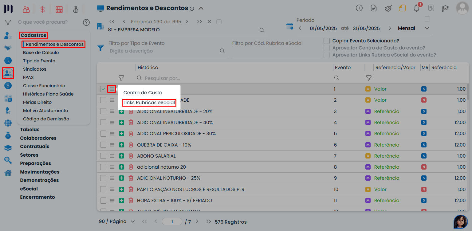 Quando uma rubrica está vinculada com parâmetros incorretos no cadastro, ela pode afetar o cálculo dos eventos enviados ao eSocial.