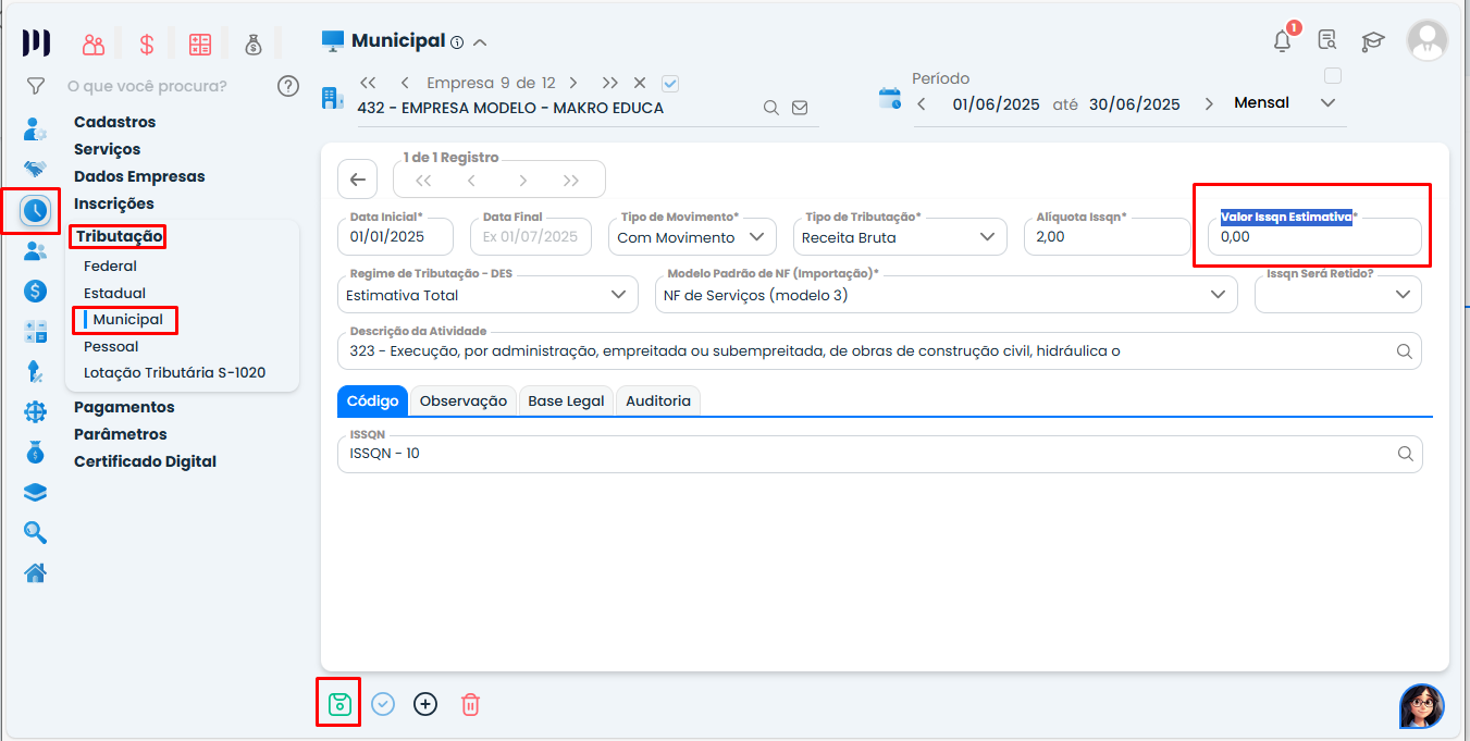 Empresas com regime de estimativa anual (ISS Estimativa)