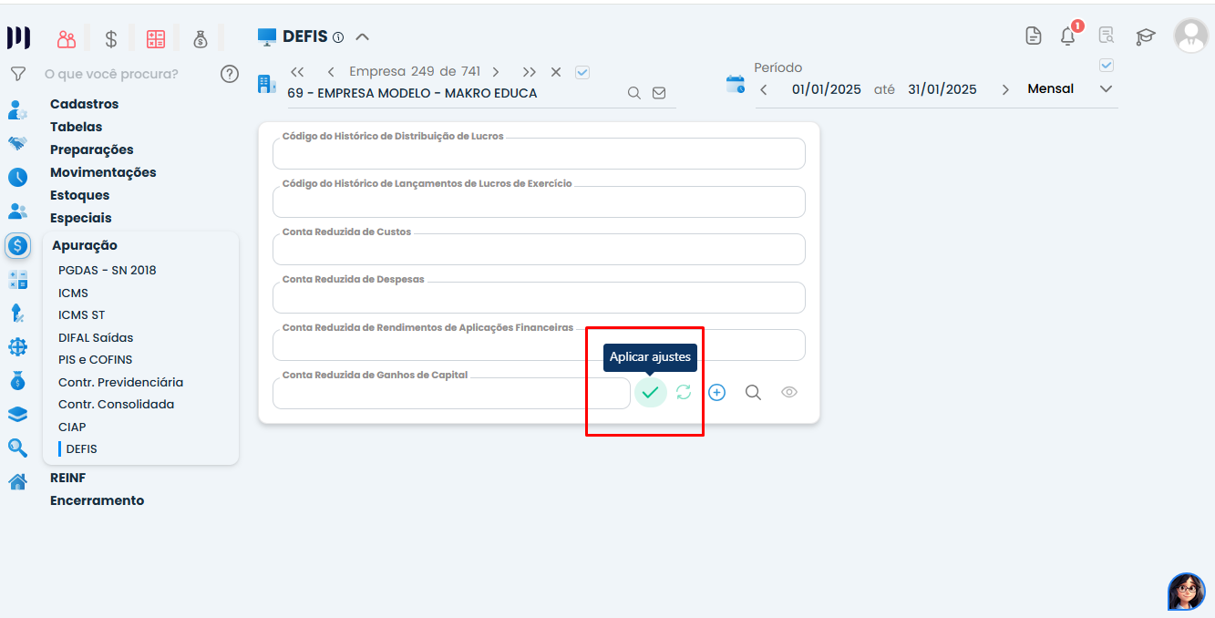 Clique em “Aplicar Ajuste” para validar os dados