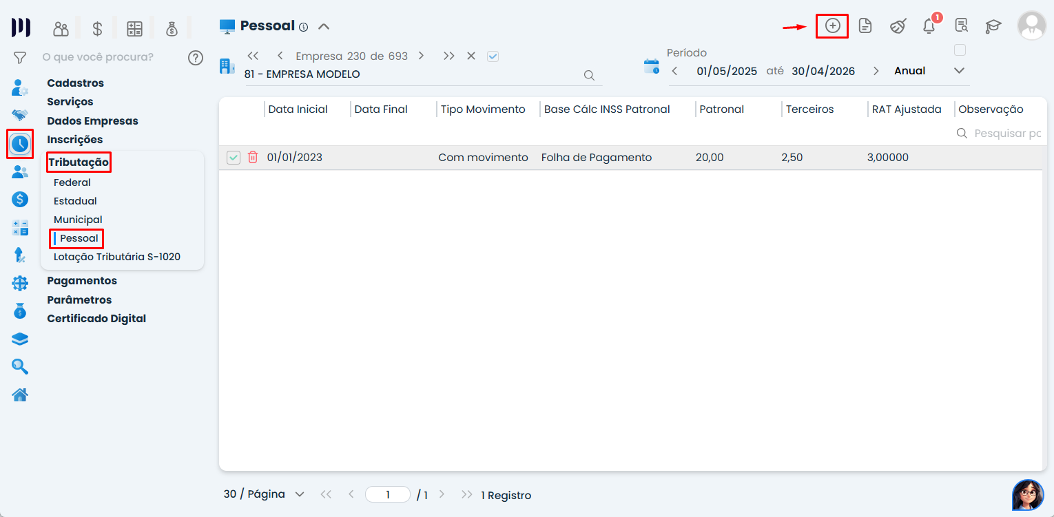 Passo 1: Acesse o menu Preparar>Tributação>Pessoal;