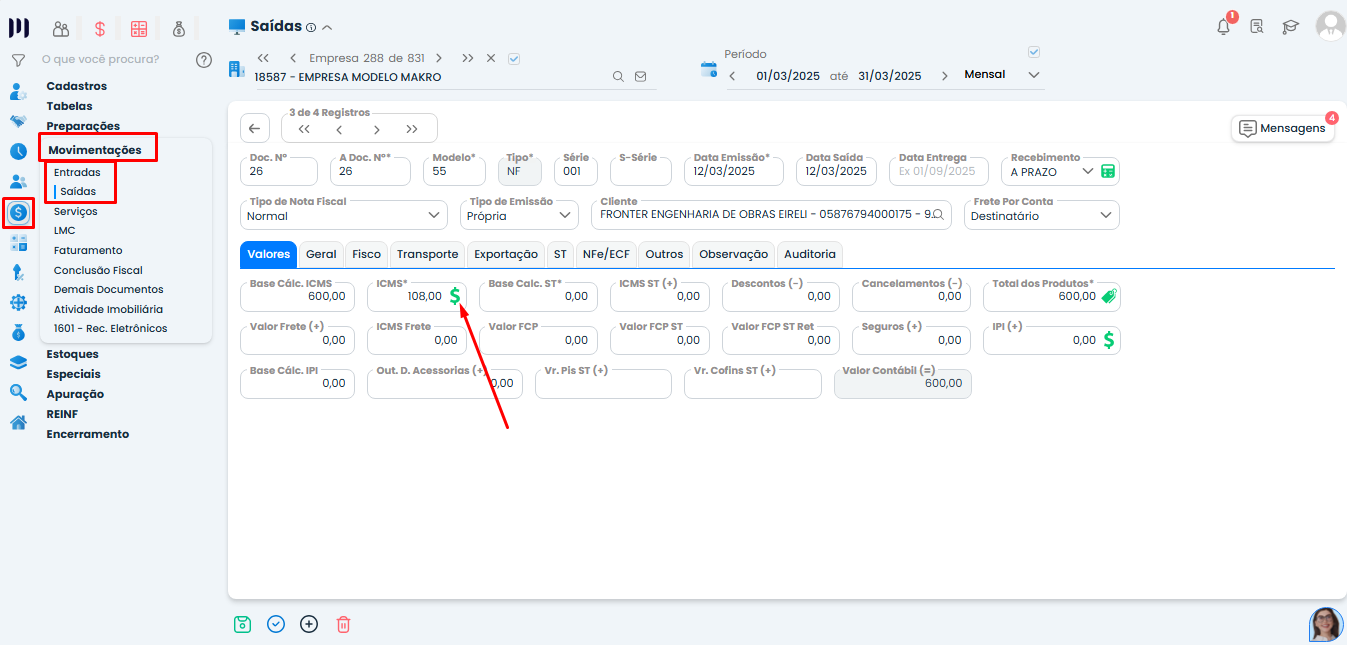 2. Acesse a aba ou seção “Itens de ICMS” ícone $