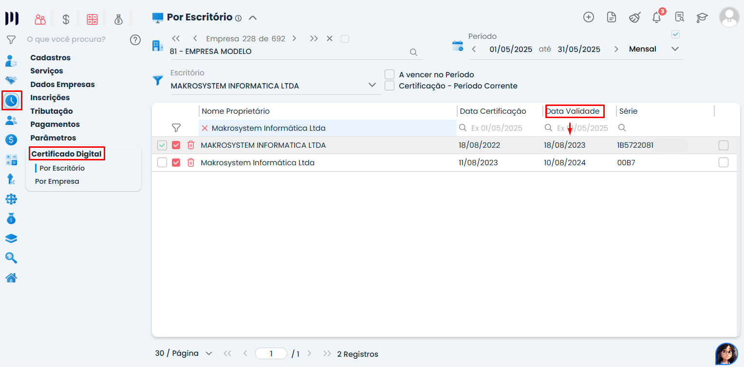 Mantenha os certificados digitais sempre atualizados e com validade ativa.