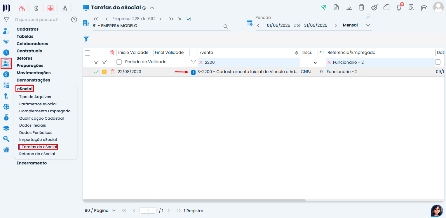 Passo 2: Pesquise pelo evento S-2200 (Admissão) ou S-2300 (Trabalhador sem vínculo);