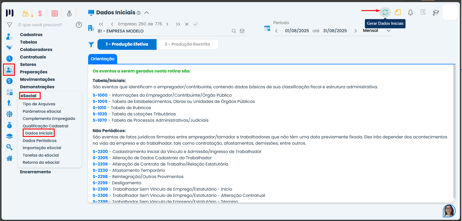 Passo 4: Acesse Pessoal>eSocial>Dados Iniciais;