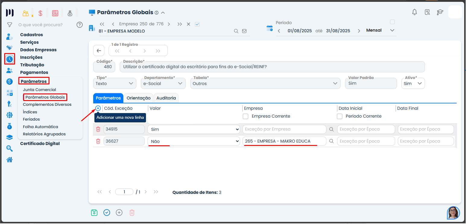 Passo 3: Confira também o Parâmetro 99, que deve estar configurado de acordo com o Grupo do eSocial ao qual a empresa pertence;