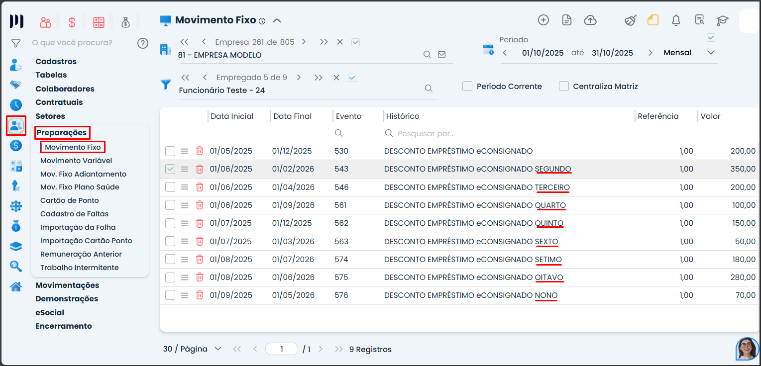 Acesse: Pessoal>Preparações>Movimento Fixo;