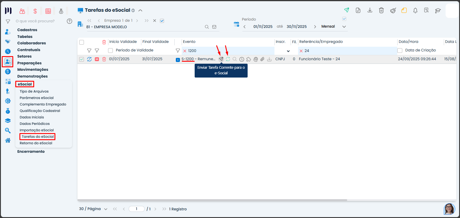 Passo 5: Reenvie o evento S-1200 que apresentou a validação;