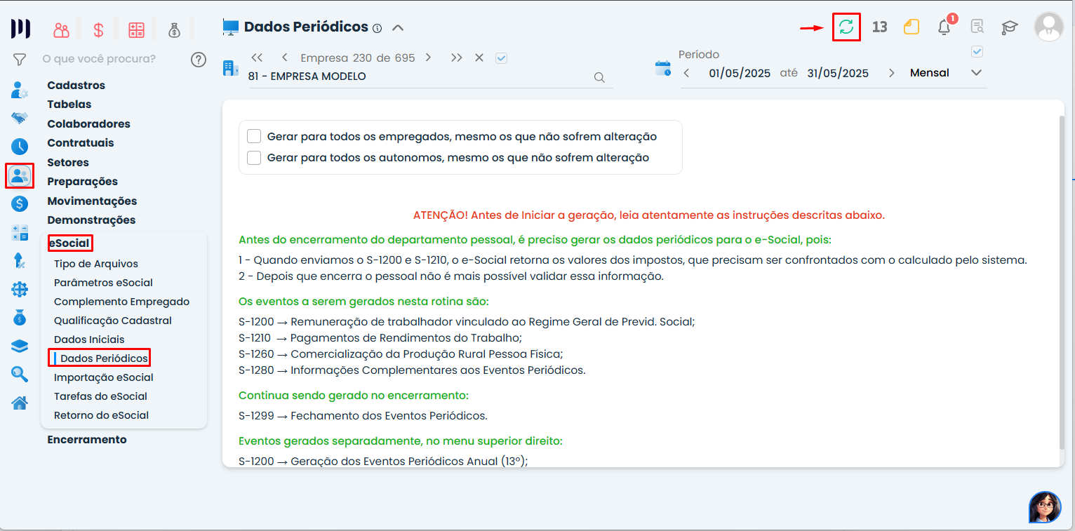 Problema: Não foi possível encerrar o período devido ao envio incorreto ou ausente dos dados periódicos, gere-os e verifique se será gerado algum evento periódico para envio ao esocial;