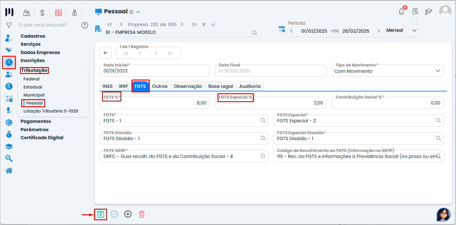 Solução 2: Verificar se a Alíquota de FGTS Está Correta na Tributação Pessoal