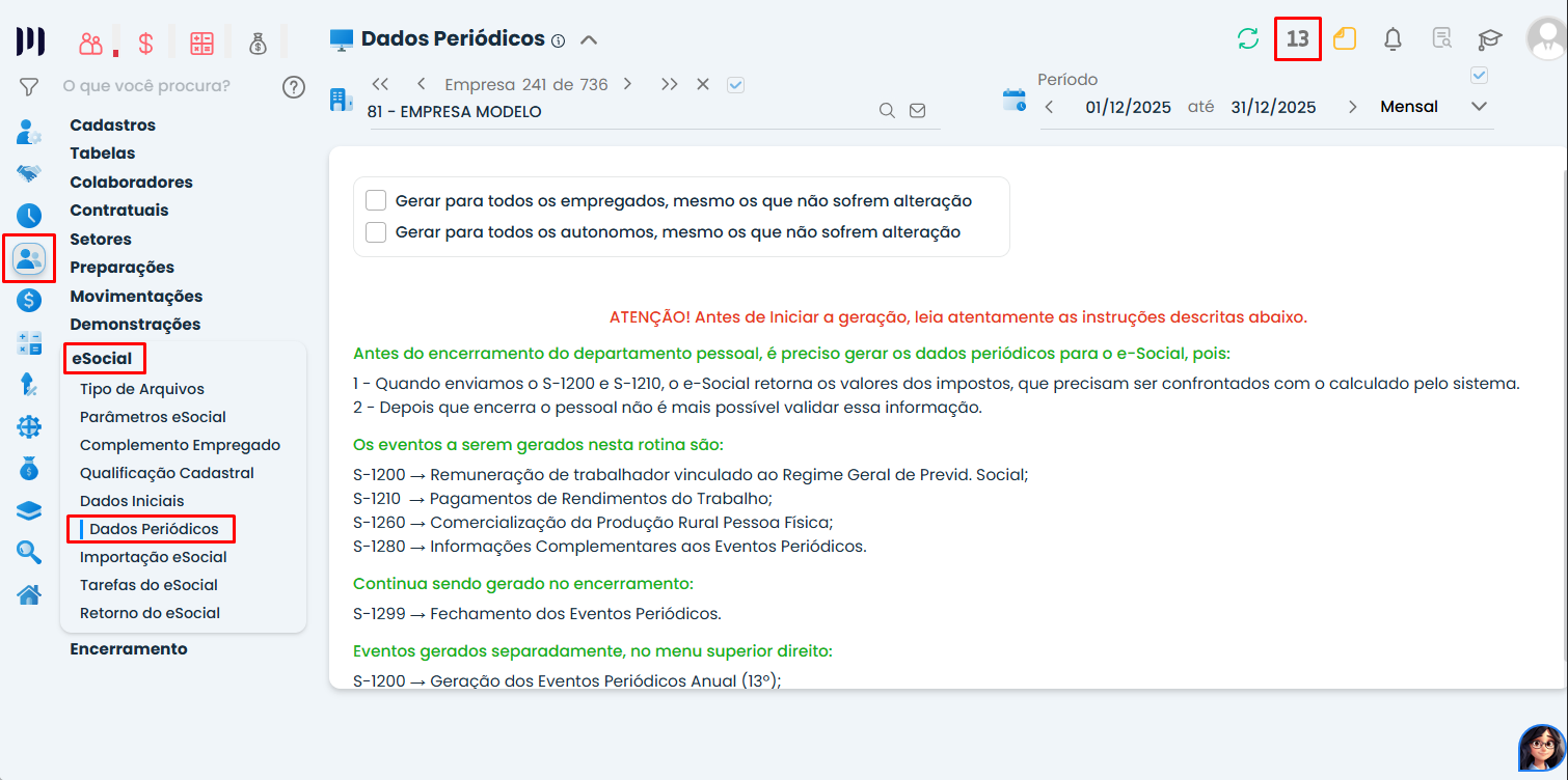 Passo 2: Clique em Gerar Dados Periódicos Anuais (13º salário);