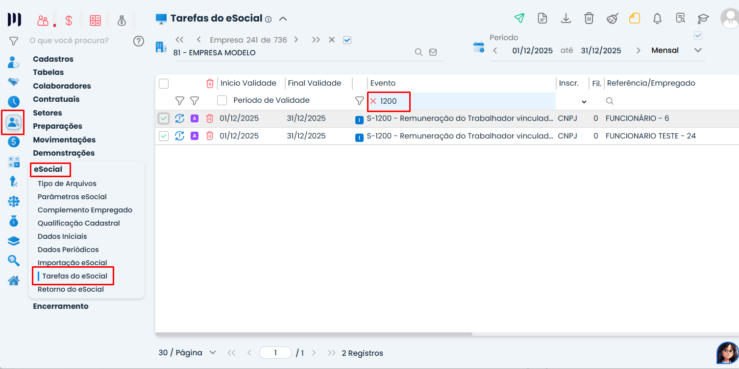Passo 7: Após isso, duplique e envie os eventos S-1200 dos empregados afetados por essa rubrica;