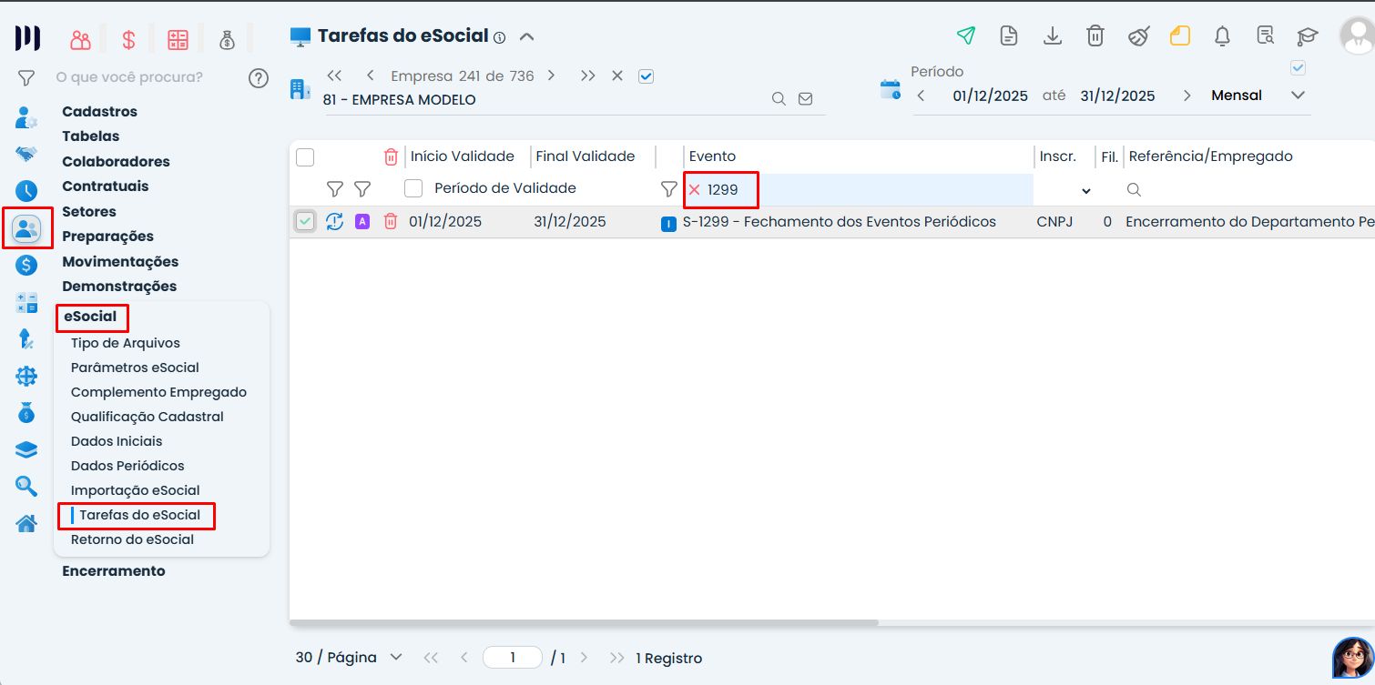 Passo 6: Será gerado o evento S-1299 (encerramento) dentro de Tarefas do eSocial;