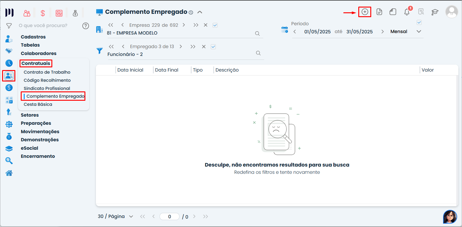 Passo 2: Em seguida, vá para Contratuais e clique em Complemento empregado.