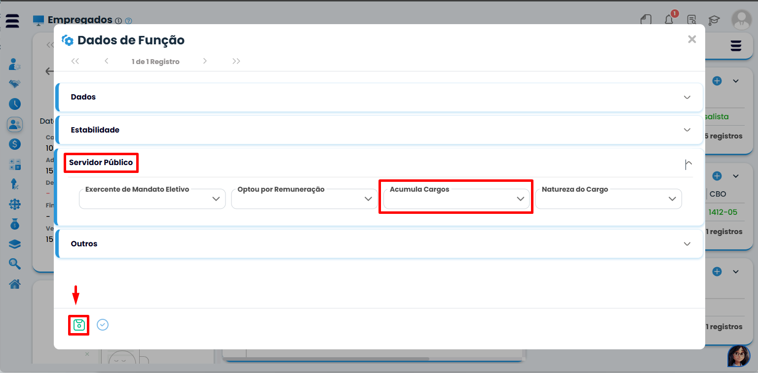 Passo 3: Na aba “Servidor Público”, no campo “Acumula Cargos”, marque a opção Sim ou Não.
