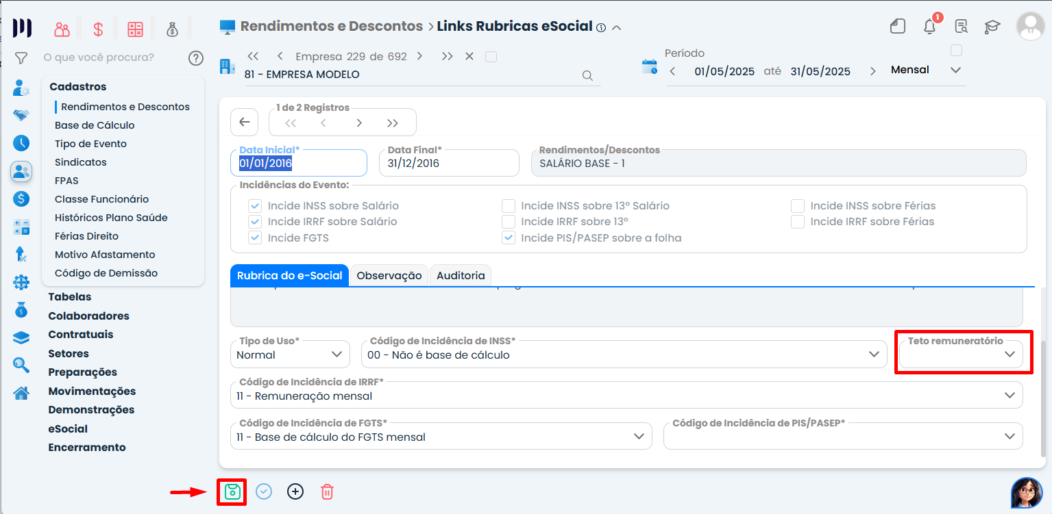 Passo 5: Clique em Salvar e envie o evento S-1010 novamente.