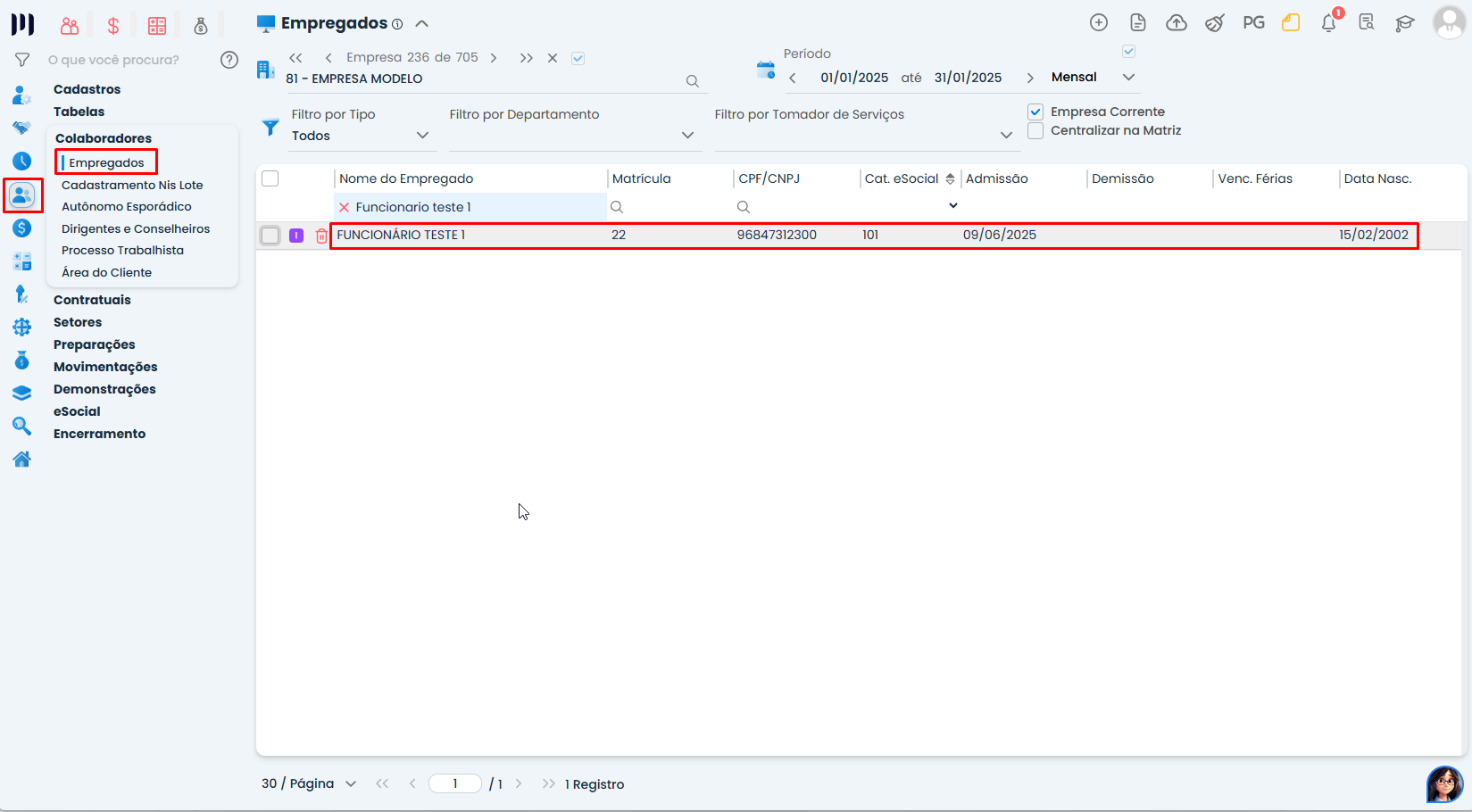 Acesse a tela Pessoal > Colaboradores > Empregados.