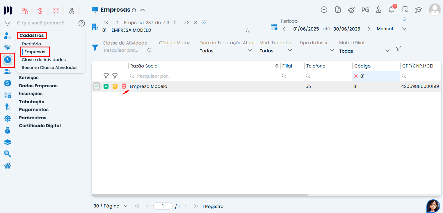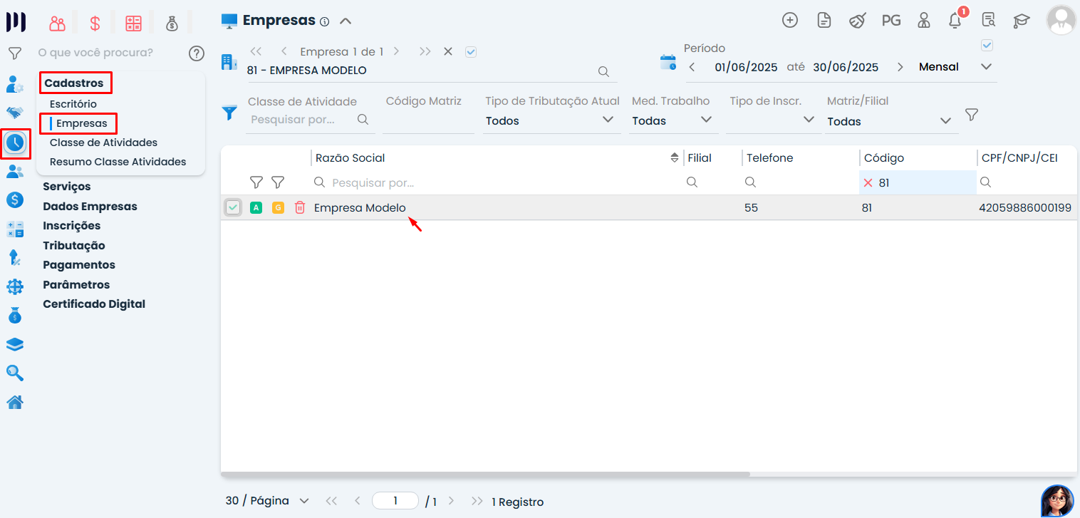 Acesse o menu Preparar e clique em Cadastros → Empresas.