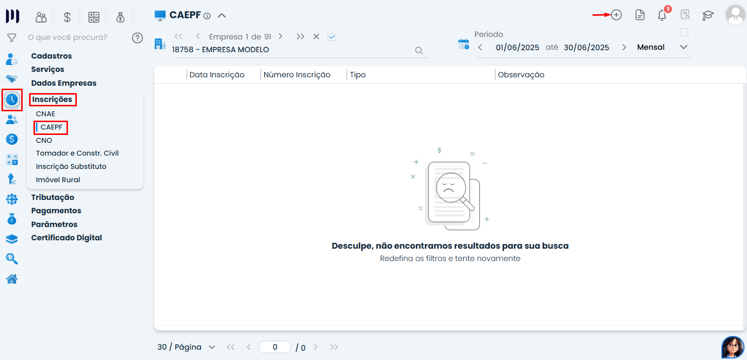 (Mensagem de erro: CNPJ preenchido no sistema, mas eSocial exige CAEPF)