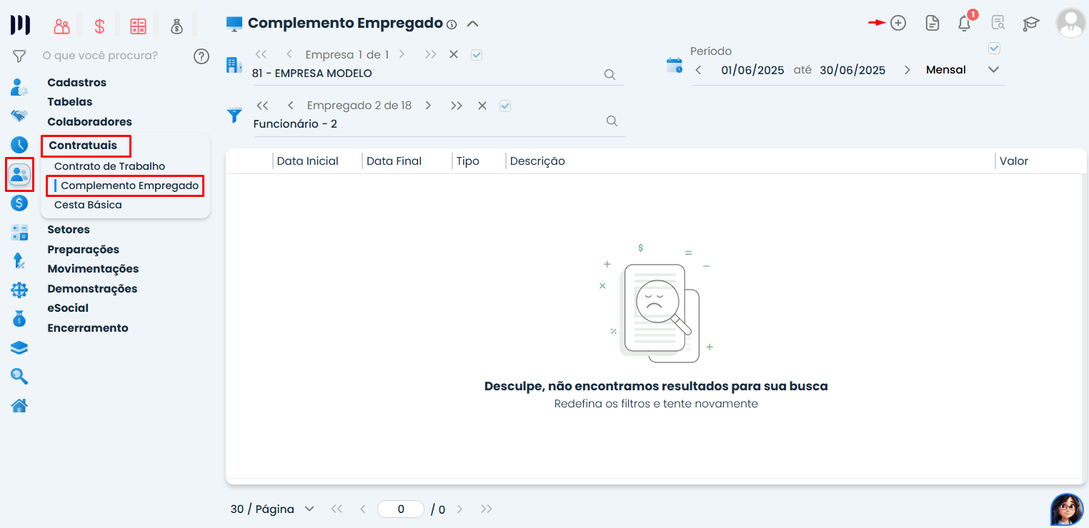 Caso esse tipo esteja cadastrado, será necessário excluí-lo para esse colaborador.