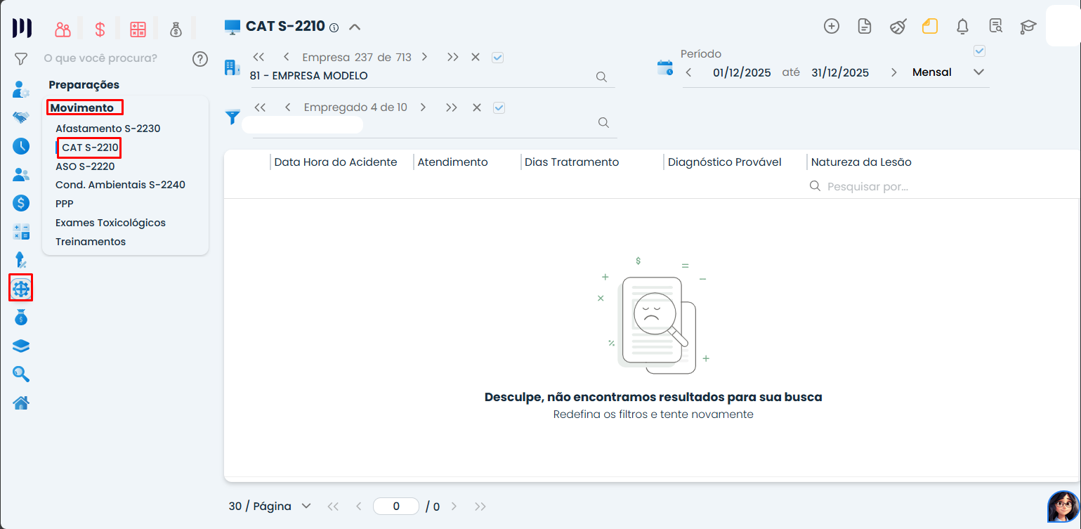 Passo 1: Acesse o evento de Comunicação de Acidente de Trabalho (CAT)