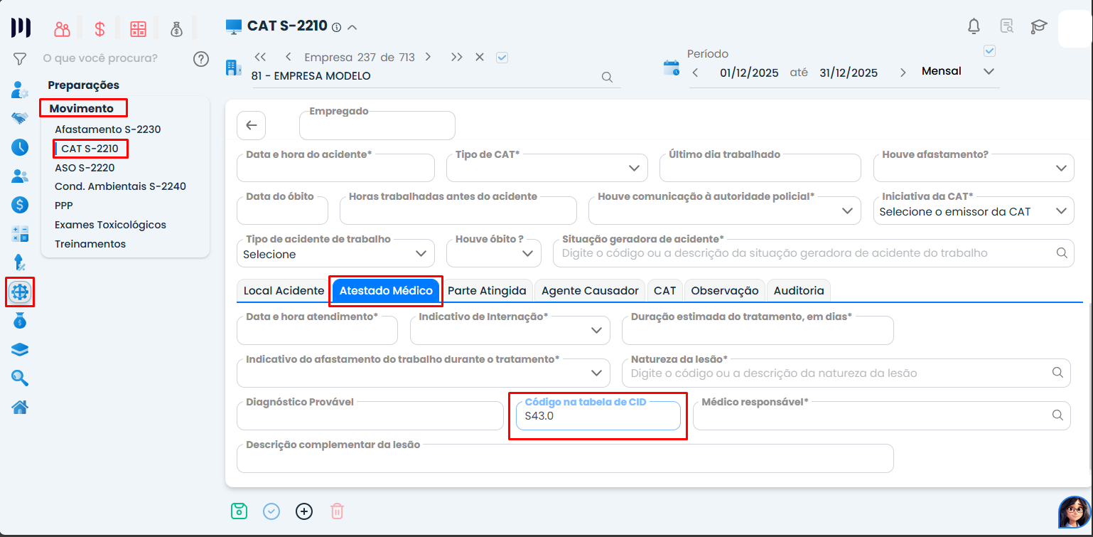 (Como corrigir código de CID inválido no atestado médico do evento CAT)