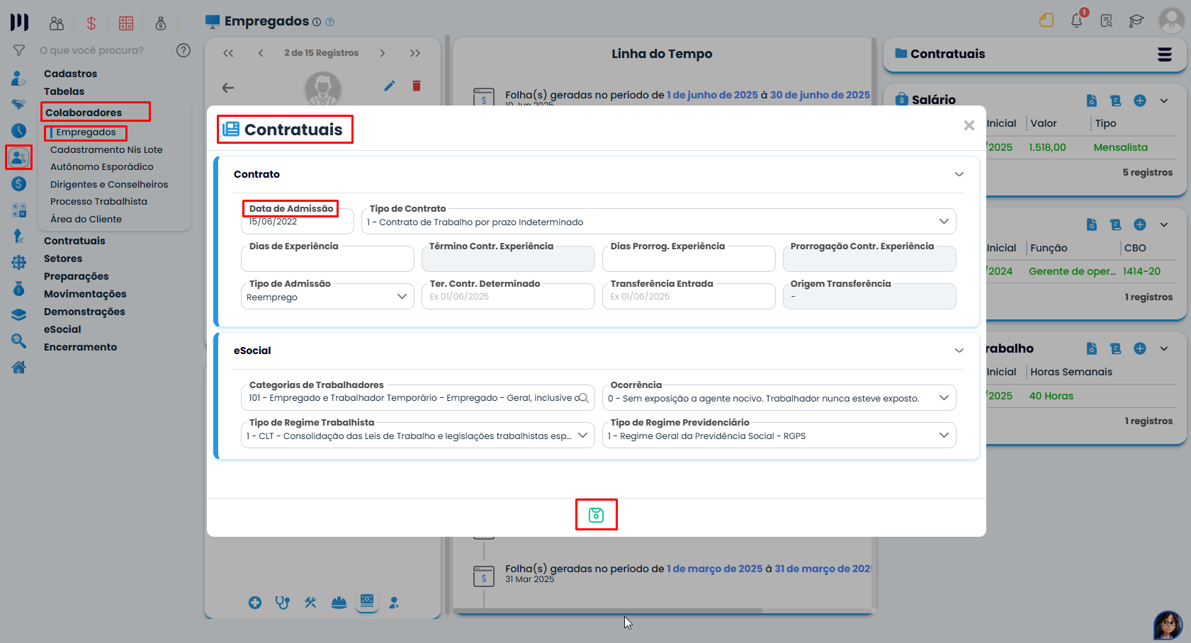 - Vá em Pessoal – Colaboradores – Empregados – Contratuais
