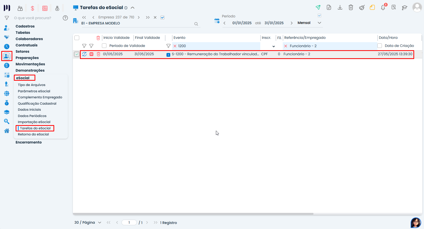 - Altere a data de admissão para ser igual ou posterior à data do S-1000 que alterou a classificação tributária.
