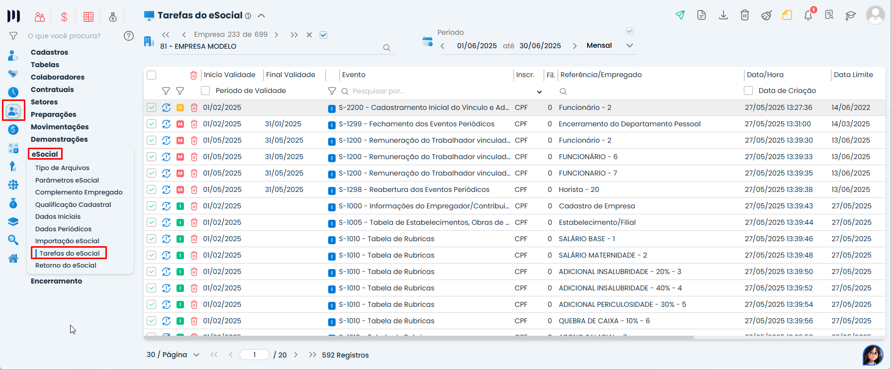 Passo 2: Após aguardar, tente fazer o envio novamente em Pessoal -> eSocial -> Tarefas do eSocial
