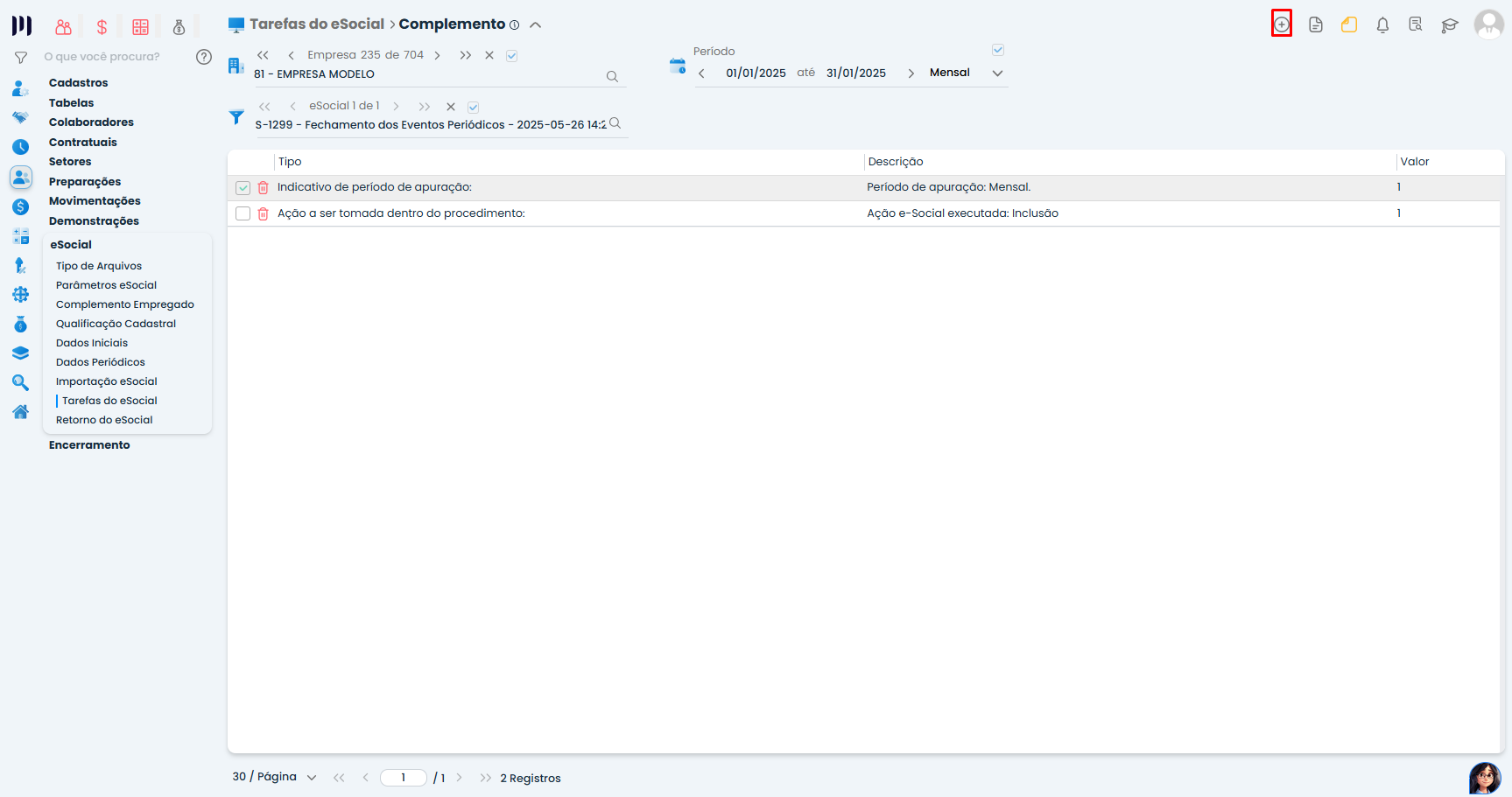 Passo 5: Salve as alterações e envie novamente o evento S-1299.