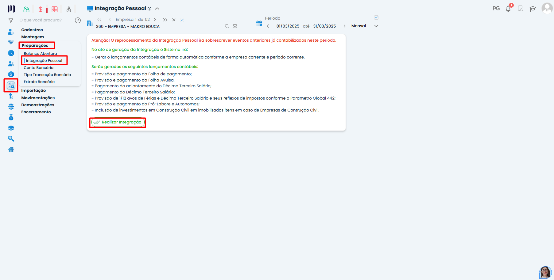 O sistema gerará automaticamente todos os lançamentos contábeis da folha