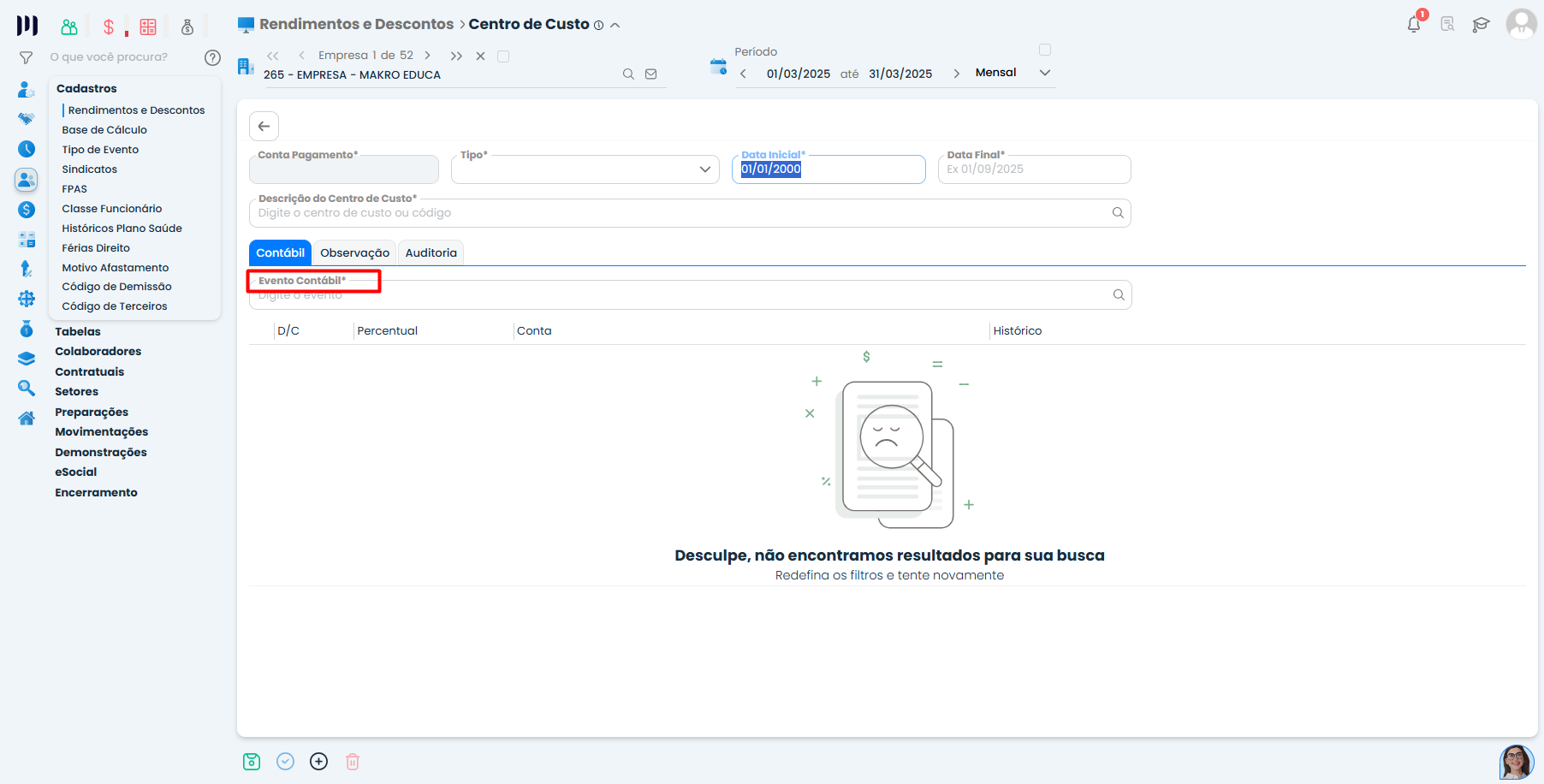 Centros OK mas sem lançamento? Verifique vínculo evento-centro de custo