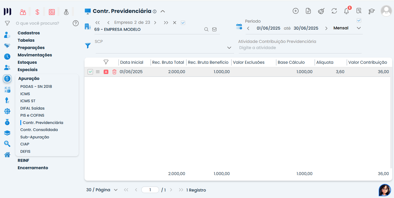 - Acesse: Fiscal > Apuração > Contribuição Previdenciária e faça a geração
