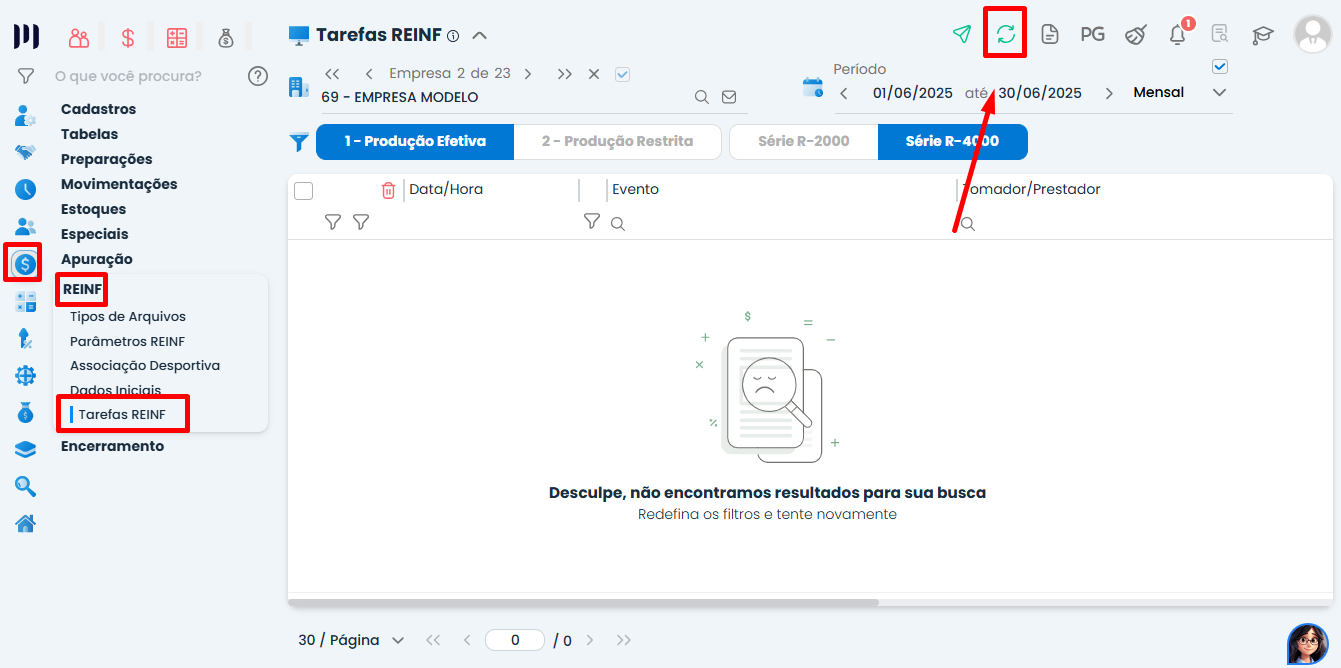 - Vá em: Fiscal > Reinf > Tarefas Reinf