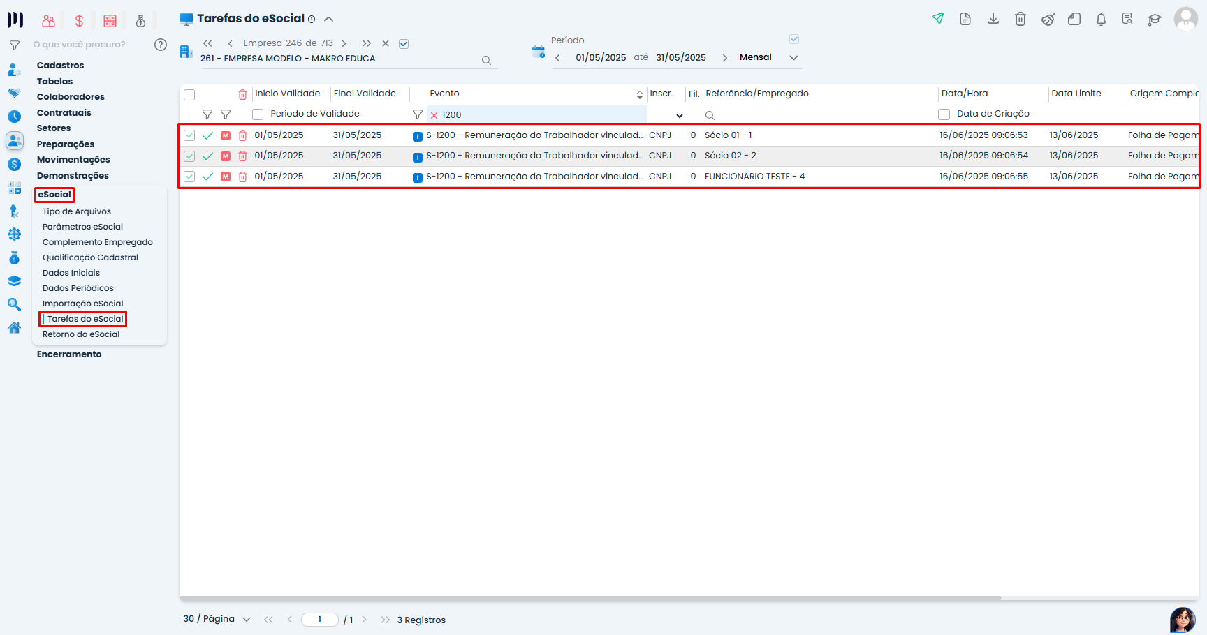 Nesse cenário, apenas confira se o S-1200 foi enviado corretamente.