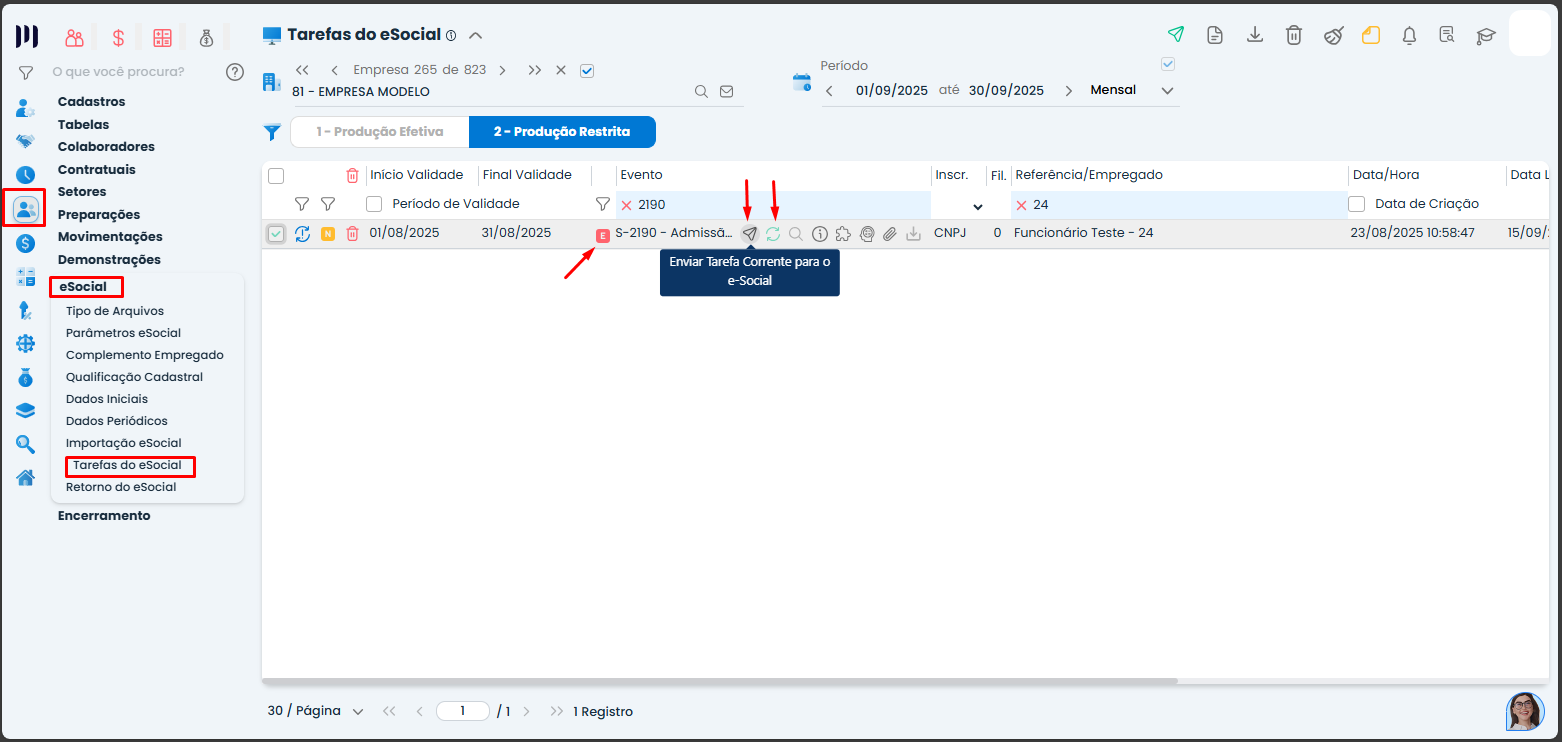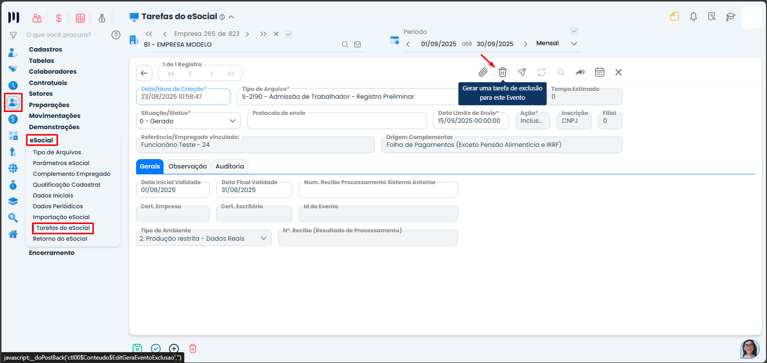 Passo 7: Processe esse novo evento para que a exclusão seja transmitida ao eSocial.