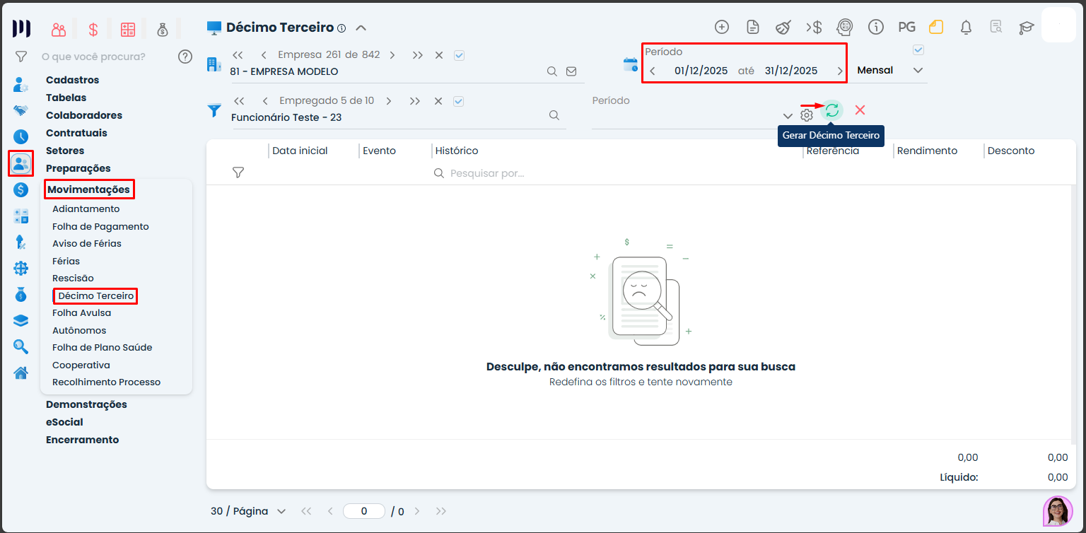 Passo 4: Gere a folha da segunda parcela do 13º salário.