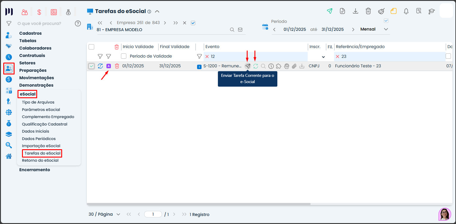 Passo 2: Em seguida, acesse Pessoal > eSocial > Tarefas do eSocial.
