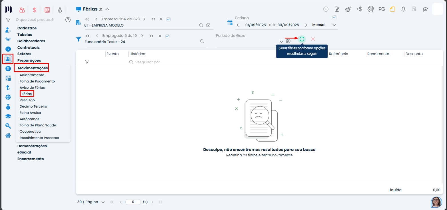 📝 Dica: Lançar as férias antes de gerar a folha garante que o eConsignado seja incluído corretamente no cálculo.