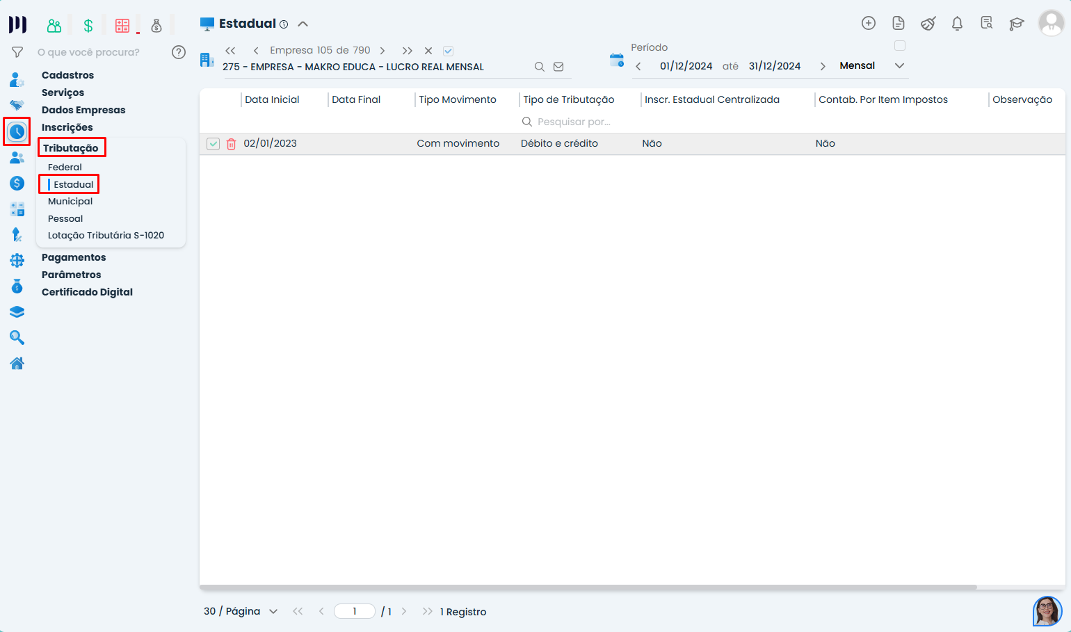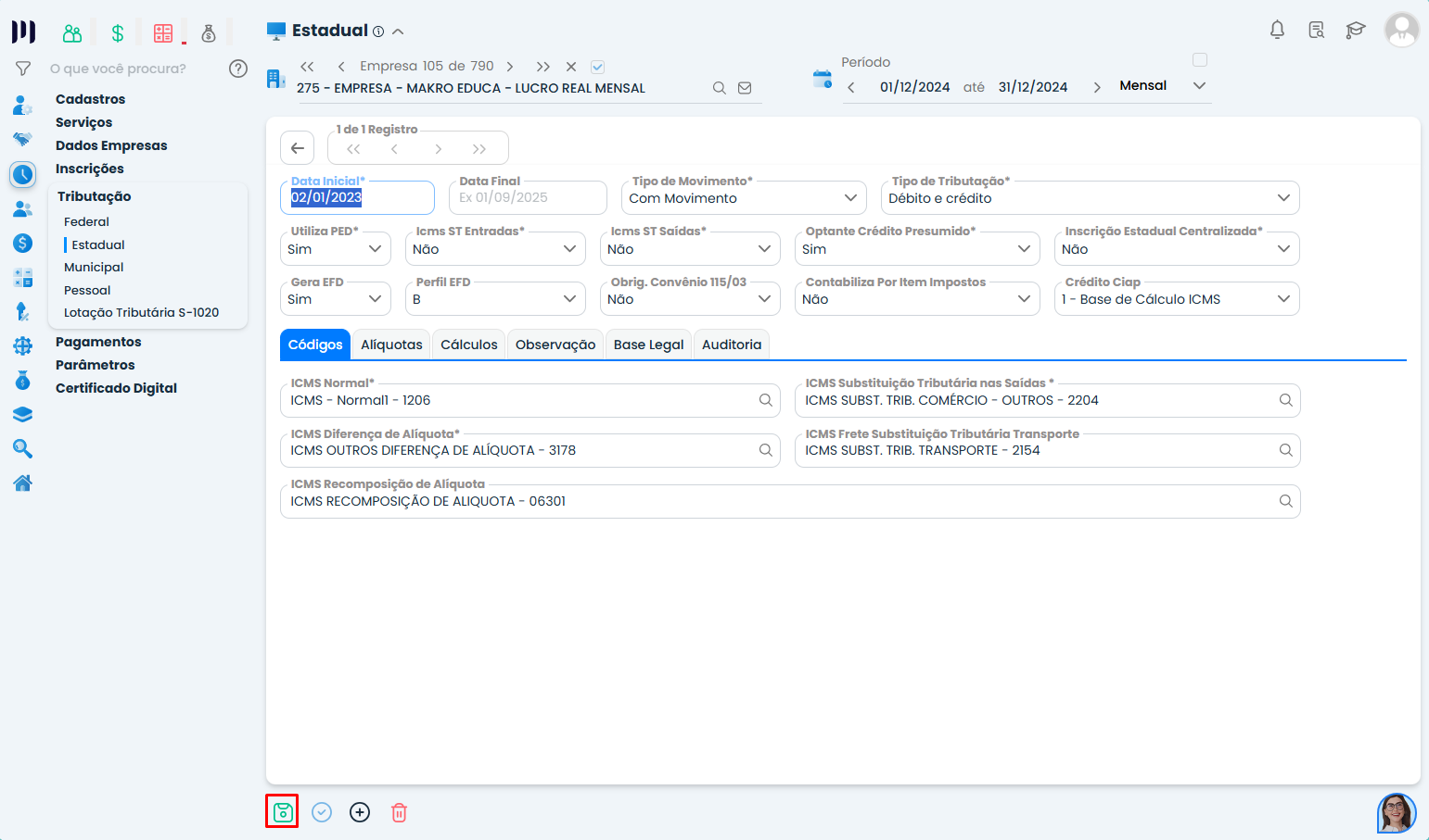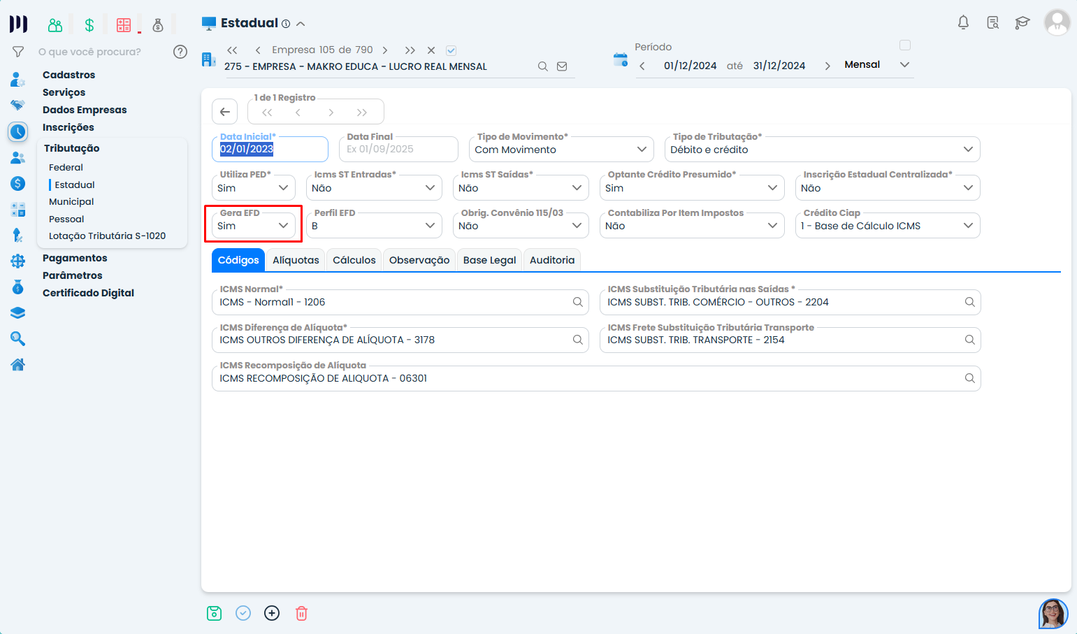 Entre no sistema e navegue até Preparar > Tributação > Estadual