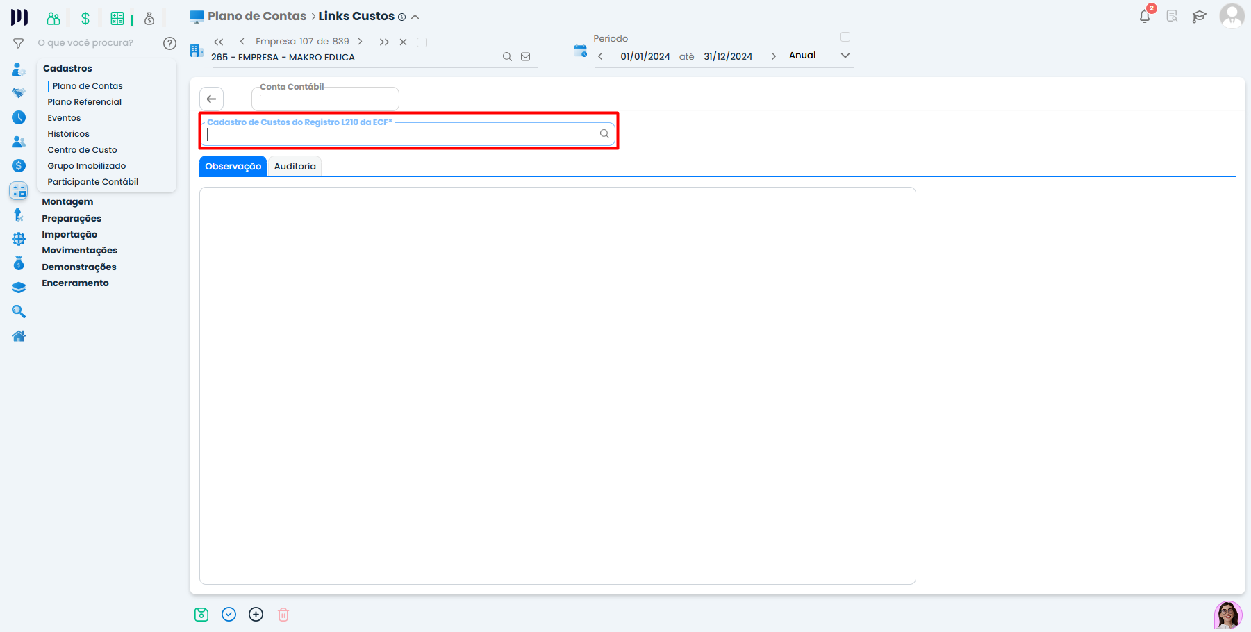 gerar ECF, escrituração contábil fiscal, registro L210, registro X390, links custos, origem aplicação recursos, links referencial, parametrização ECF