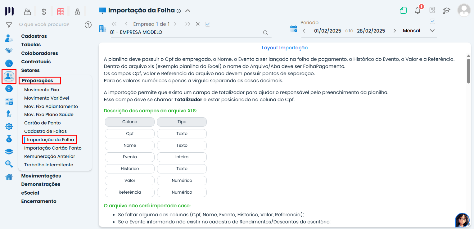 Título: Como realizar a importação da folha de pagamento? (Erro: “Arquivo inválido” ao tentar importar)