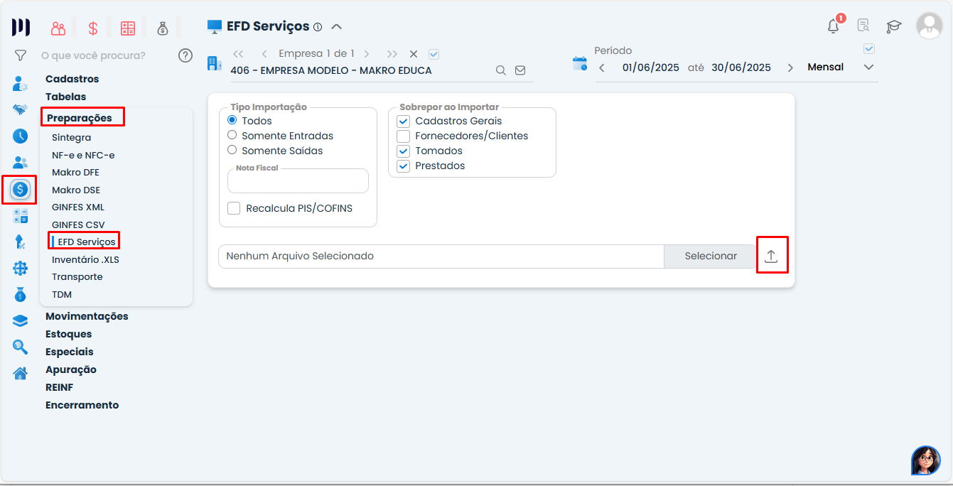 No sistema Makrosystem, está disponível a funcionalidade de importação de arquivos gerados pelo cliente, referentes às notas fiscais de serviços tomados e prestados.