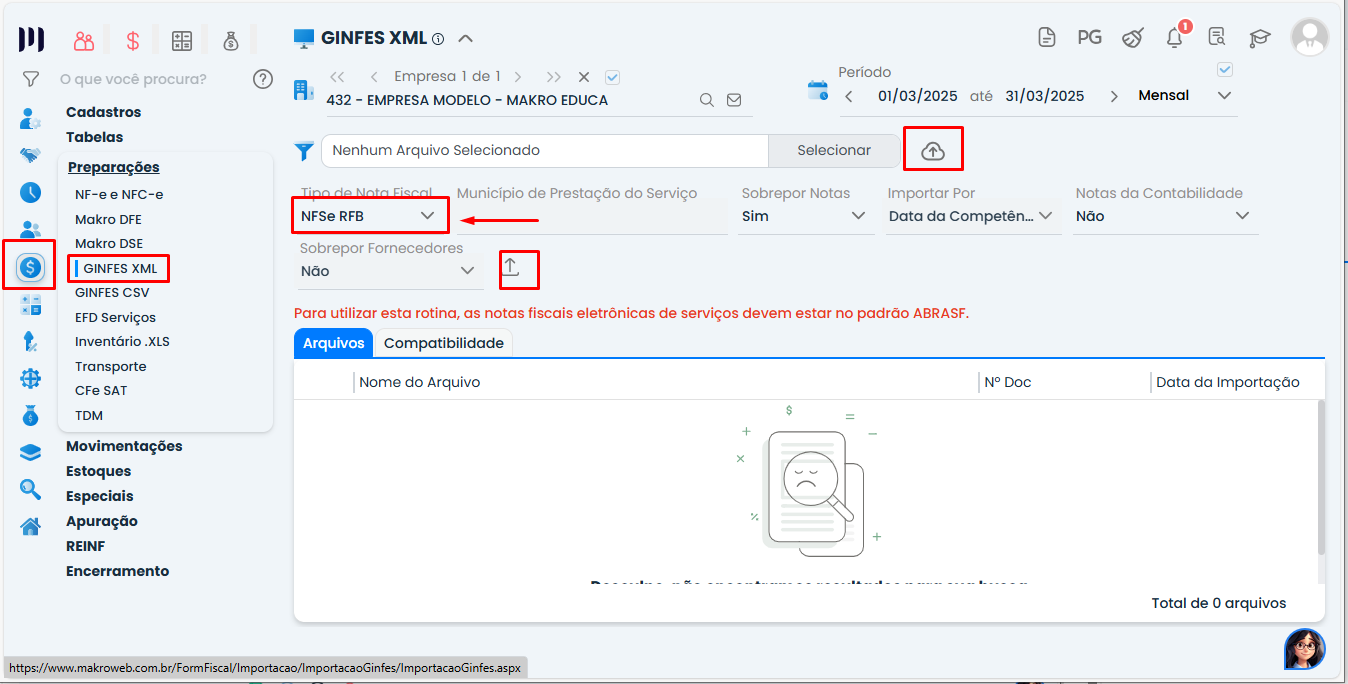 Em seguida iremos para a aba de importação da notas em:
