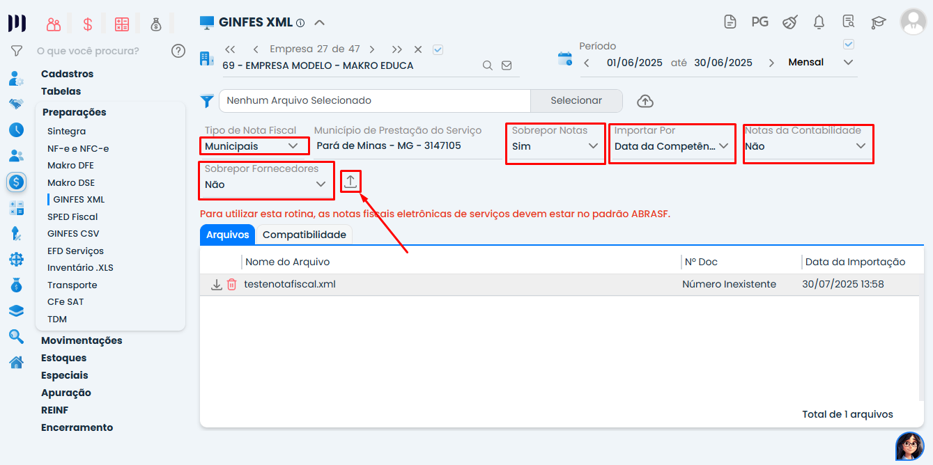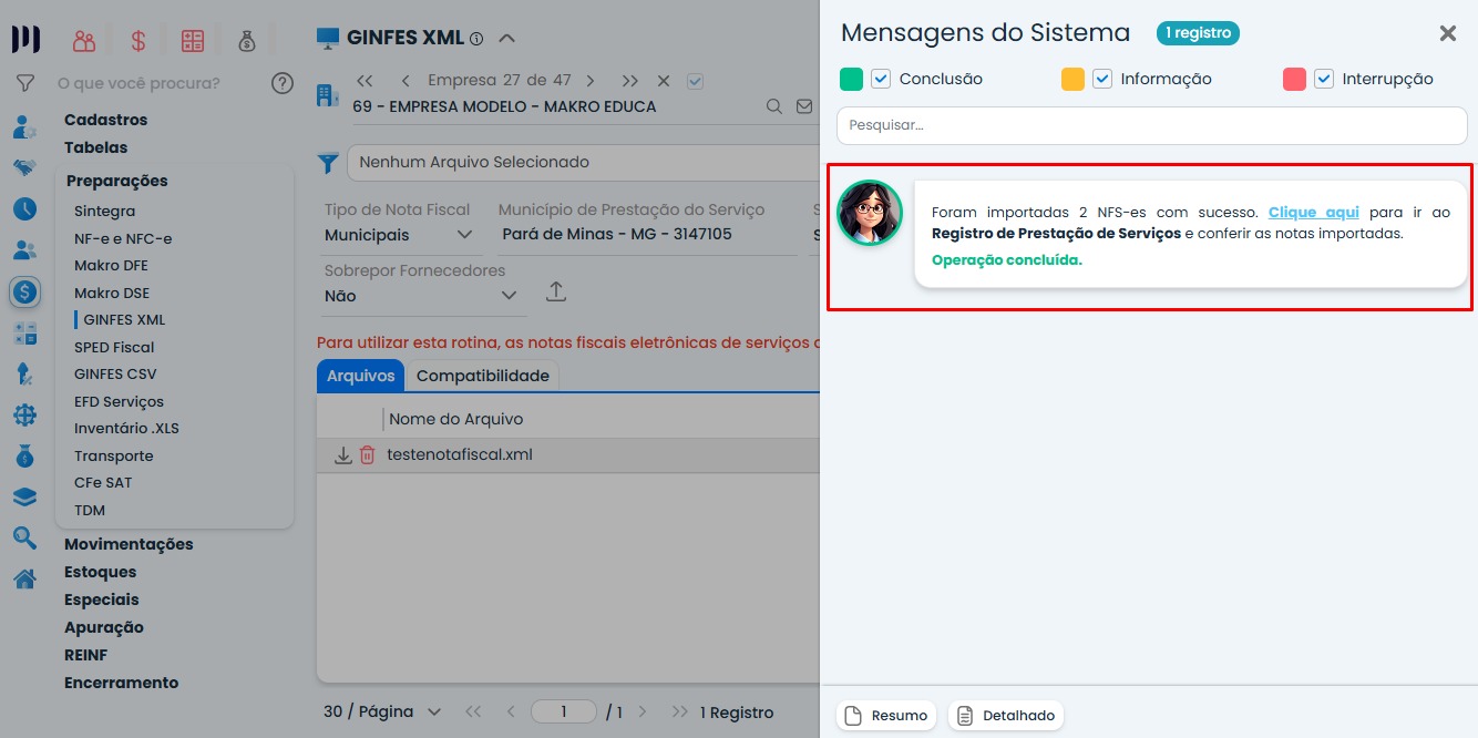 Importação de Notas Fiscais de Serviços no Sistema Makrosystem