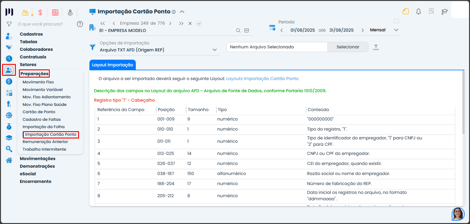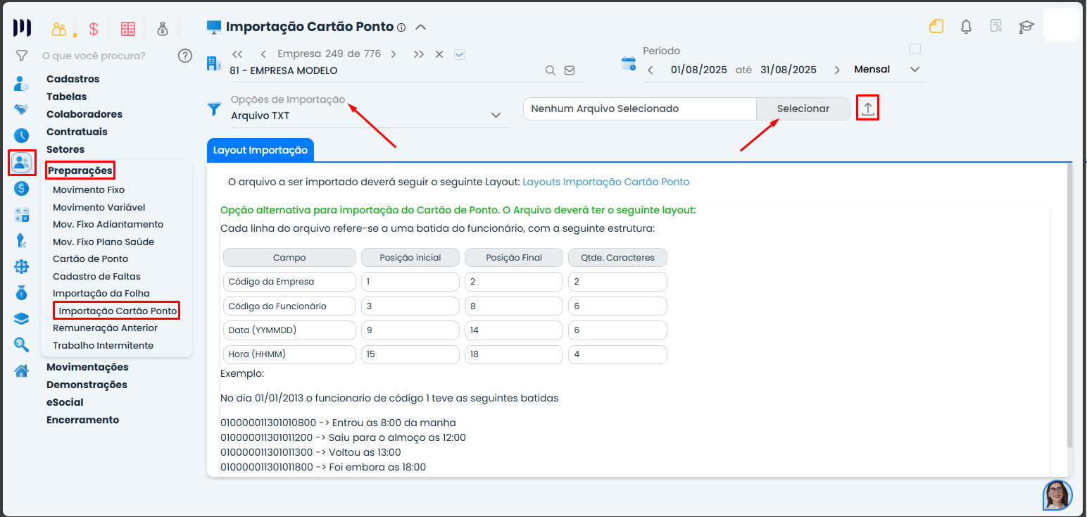 Importação de Cartão de Ponto em TXT (Arquivo de texto simples).