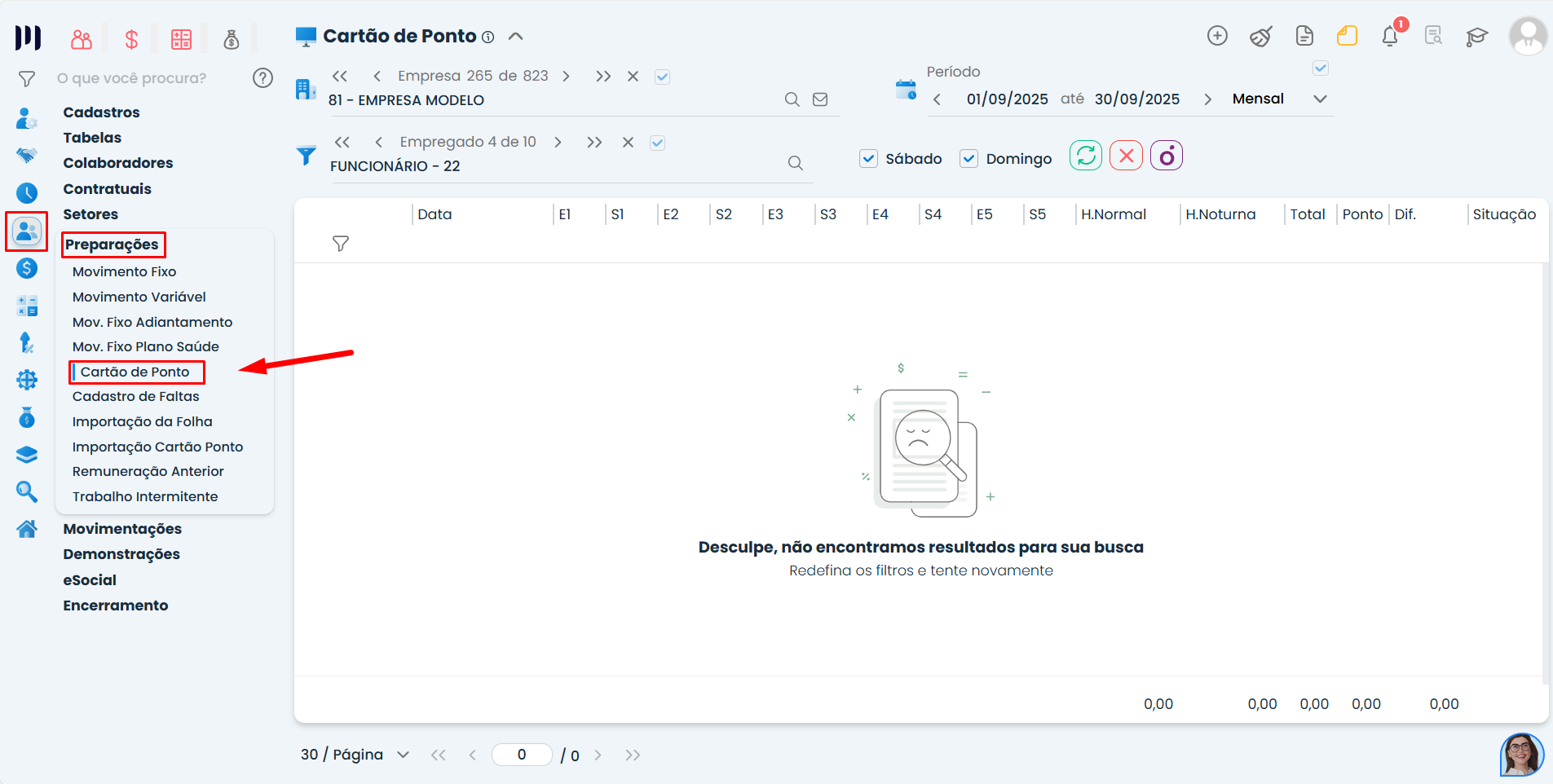 Passo 1: Acesse a aba Pessoal>Preparações>Importação Cartão de Ponto;