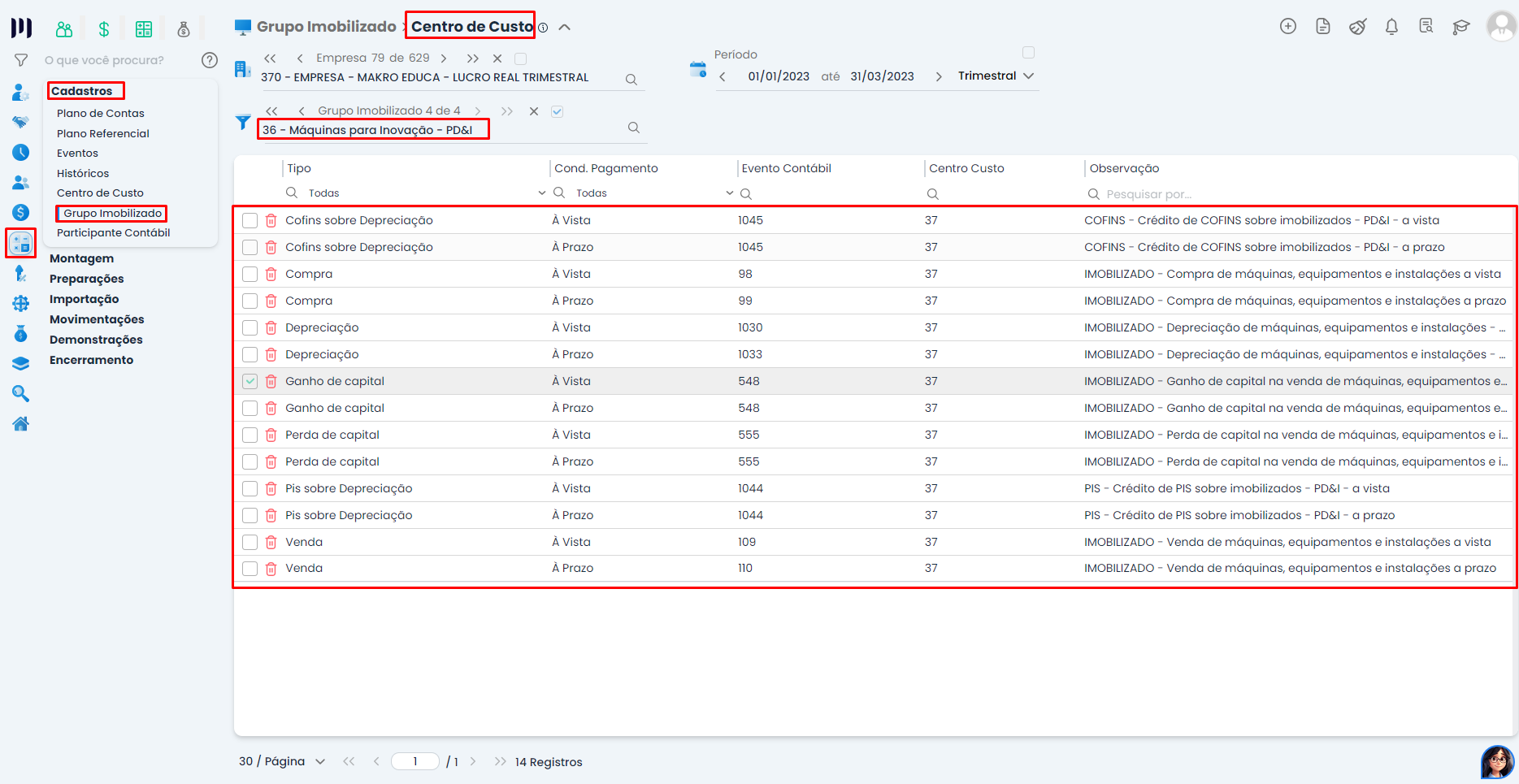 • Acesse: Contábil > Cadastros > Grupo Imobilizado