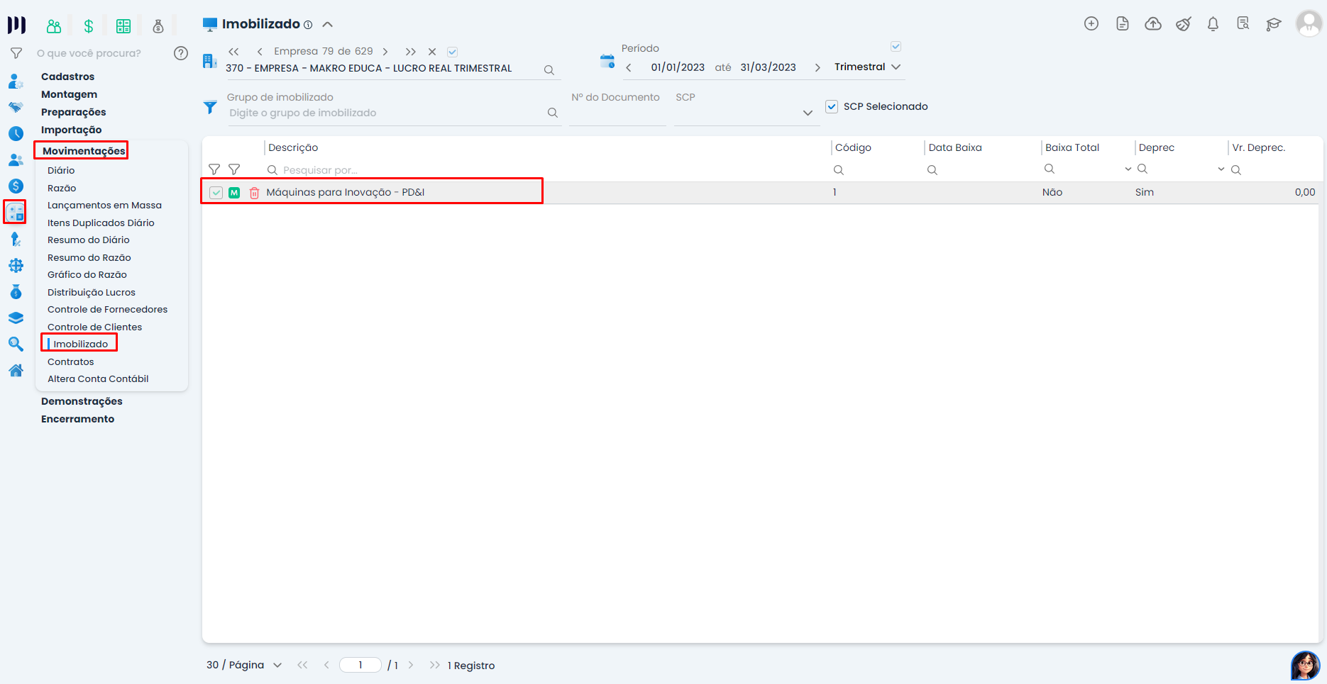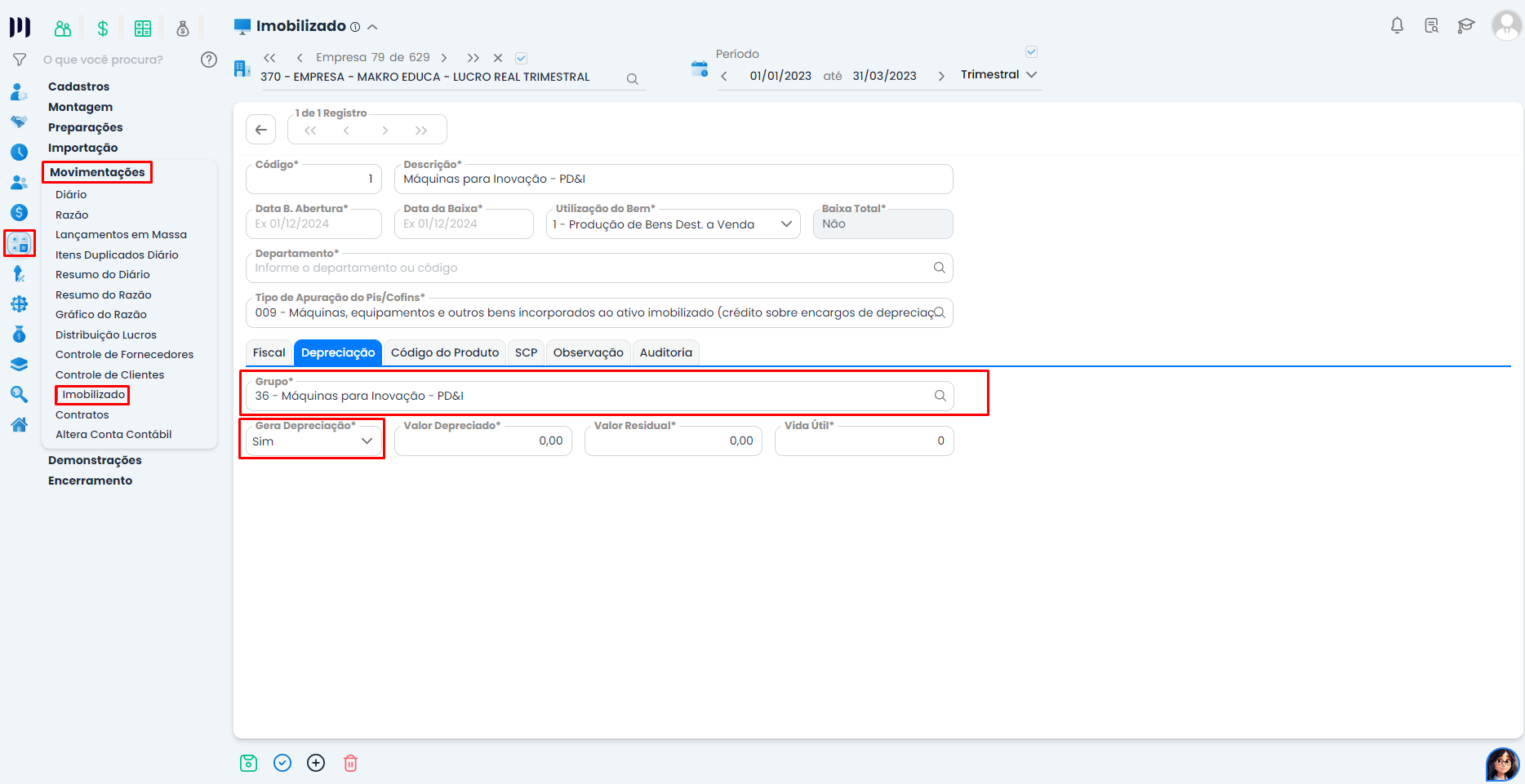Segundo Passo: Cadastrar o Bem no Imobilizado