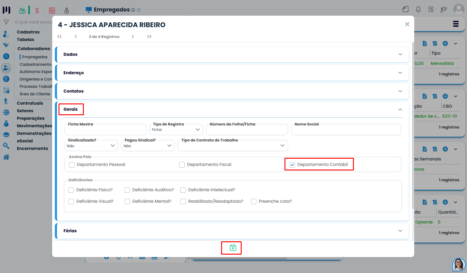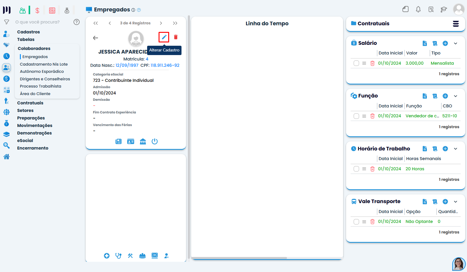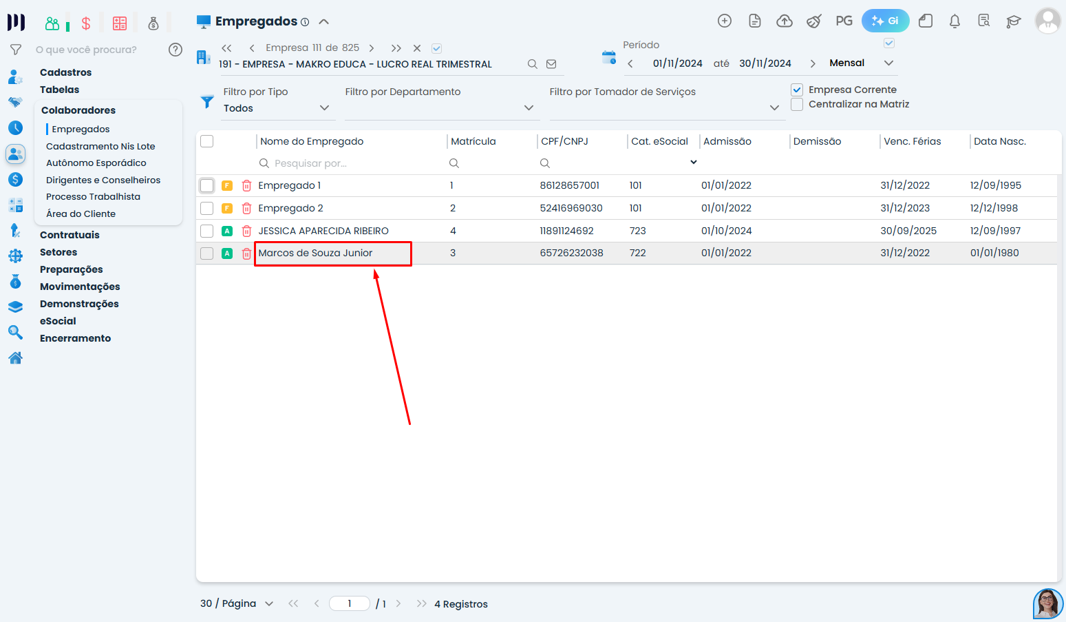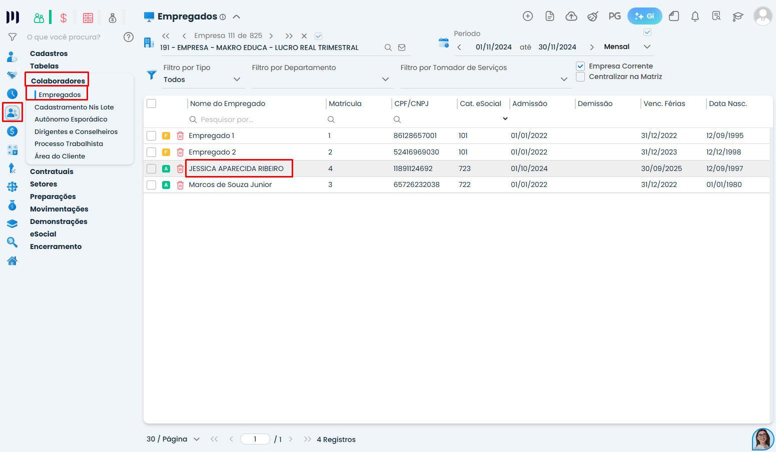 1. Navegue até: Pessoal > Colaboradores > Empregados